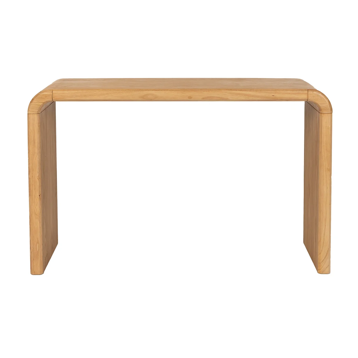 Mit einer Tiefe von nur 38 cm passt sich der Konsolentisch mühelos auch schmaleren Räumen an. Die runde Formgebung und die präzise Verarbeitung sorgen für ein harmonisches Erscheinungsbild, das sich vielseitig einsetzen lässt – ob als Ablagefläche, als stilvoller Arbeitsplatz oder als dekorativer Akzent.