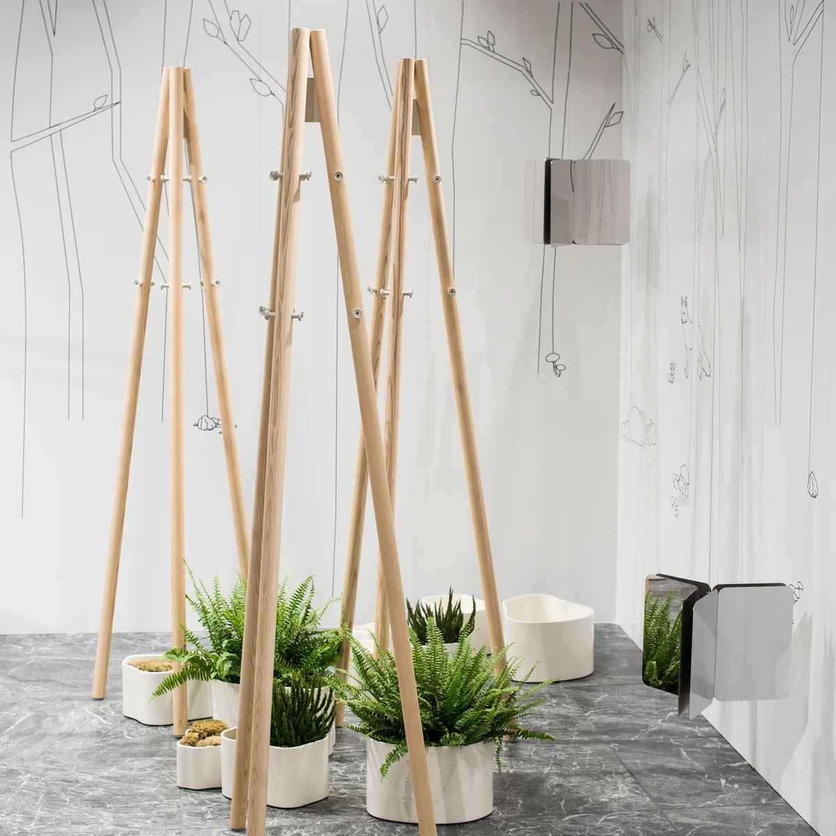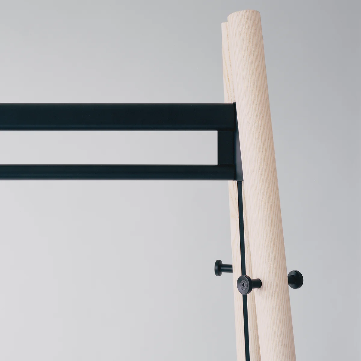 Der Kiila Kleiderständer ist ein Entwurf von Daniel Rybakken für den finnischen Hersteller Artek. Für Rybakken bestand die Herausforderung darin, Objekte zu schaffen, die sich harmonisch in das Artek Sortiment einfügen aber auch Grenzen überschreiten und eine eigene Geschichte erzählen. Das Ergebnis ist eine Serie nützlicher und vielseitiger Kleinmöbelobjekte für den Eingangsbereich, die sich Kiila (finnisch für Keil) nennt. Teil der Kollektion ist -neben einer Bank und einer Garderobe- ein Kleiderständer, der im Flur bestens zur Geltung kommt. Schwere Mäntel, Jacken, Hüte, Schals und Taschen finden an dem filigran wirkenden Kleiderständer ihren Platz, ohne ihn aus dem Gleichgewicht zu bringen. Auch im Bad genutzt können Handtücher und andere Utensilien daran aufgehängt werden.