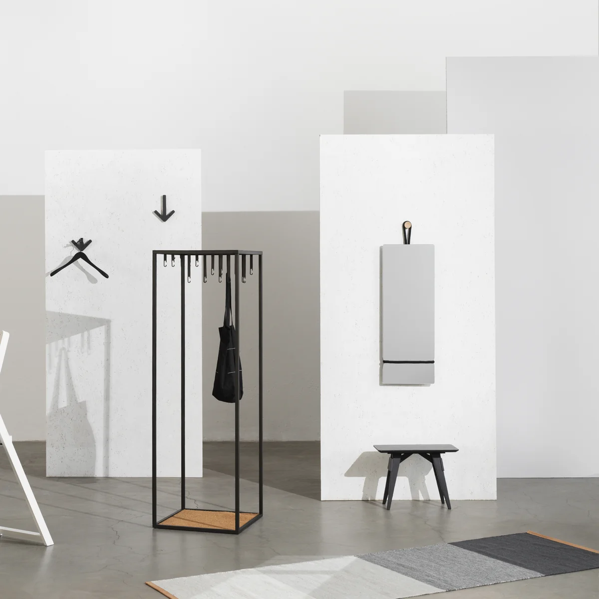 Die Atelier Garderobe von Design House Stockholm ist ein grafisch gestaltetes, offenes Rahmenelement, in dem Jacken, Mäntel Taschen und weitere Kleidungsstücke stilvoll präsentiert werden können. Die Atelier Garderobe kann klassisch im Flur verwendet werden, eignet sich jedoch auch als alternativer Kleiderschrank im Schlafzimmer.
