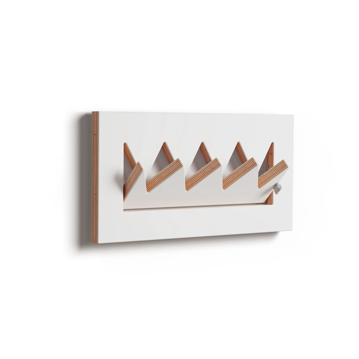 Die Fläpps Garderobe Crownhäng von Ambivalenz setzt der Fläpps-Kollektion die Krone auf. Einfach und elegant klappen die Zacken der Krone aus und bieten sofort Platz für Jacken, Schals, Hüte. Die Fläpps Garderobe Crownhäng ist eine königliche Garderobe, die perfekt in die nächste Nische passt und jeder Umgebung einen royalen Touch verleiht.