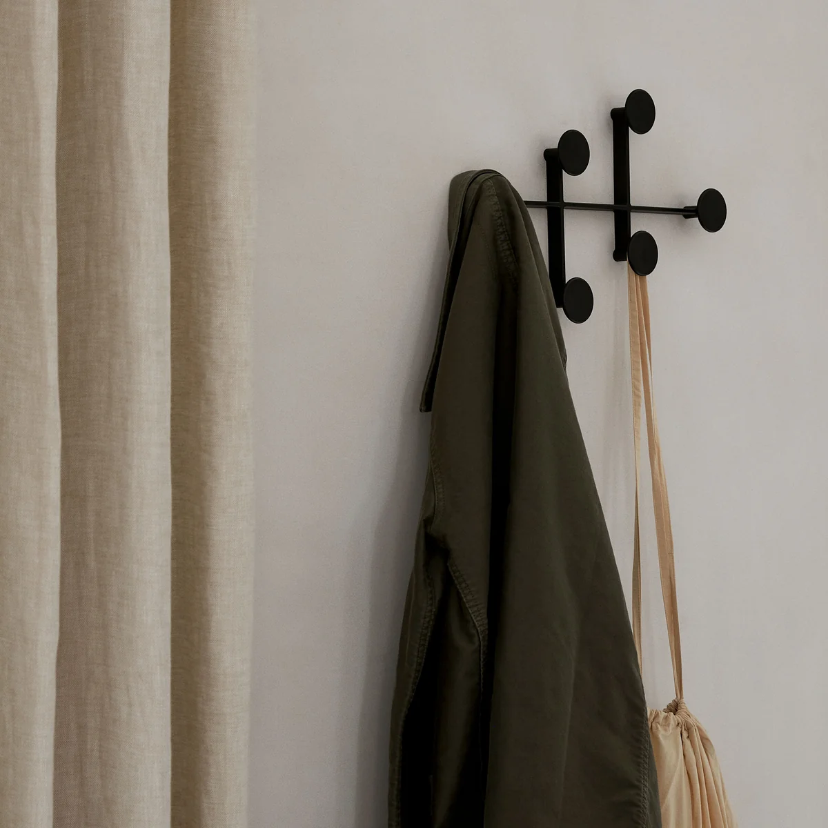 Der Kleiderhaken lässt sich einfach an der Wand anbringen und alle Schrauben sind im Rahmen verborgen, damit nichts den klaren Eindruck stört. Er wird aus pulverbeschichtetem Metall in verschiedenen Farben hergestellt. Außerdem ist er in verschiedenen Größen erhältlich.