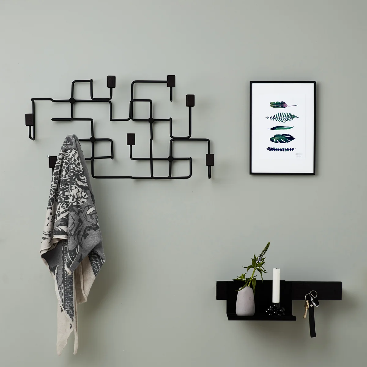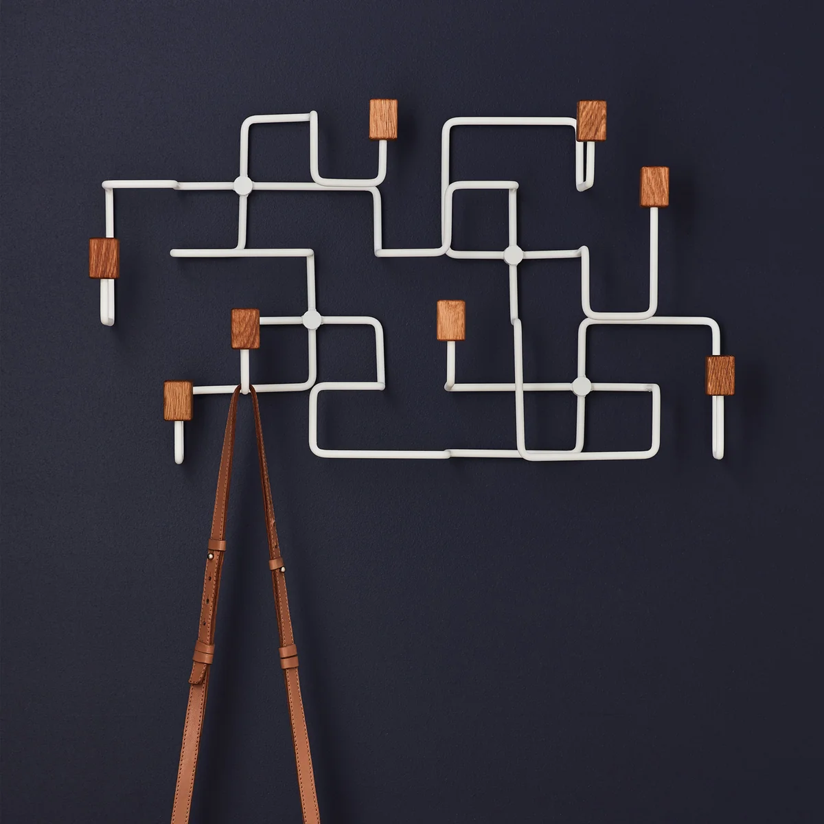 Die Underground Wandgarderobe von Gejst ist vom Londoner U-Bahn System inspiriert und zeichnet sich durch ihre netzartige Erscheinung aus. Das Drahtgestell schafft Dimension und wirkt beinahe wie ein kleines Kunstwerk an der Wand.