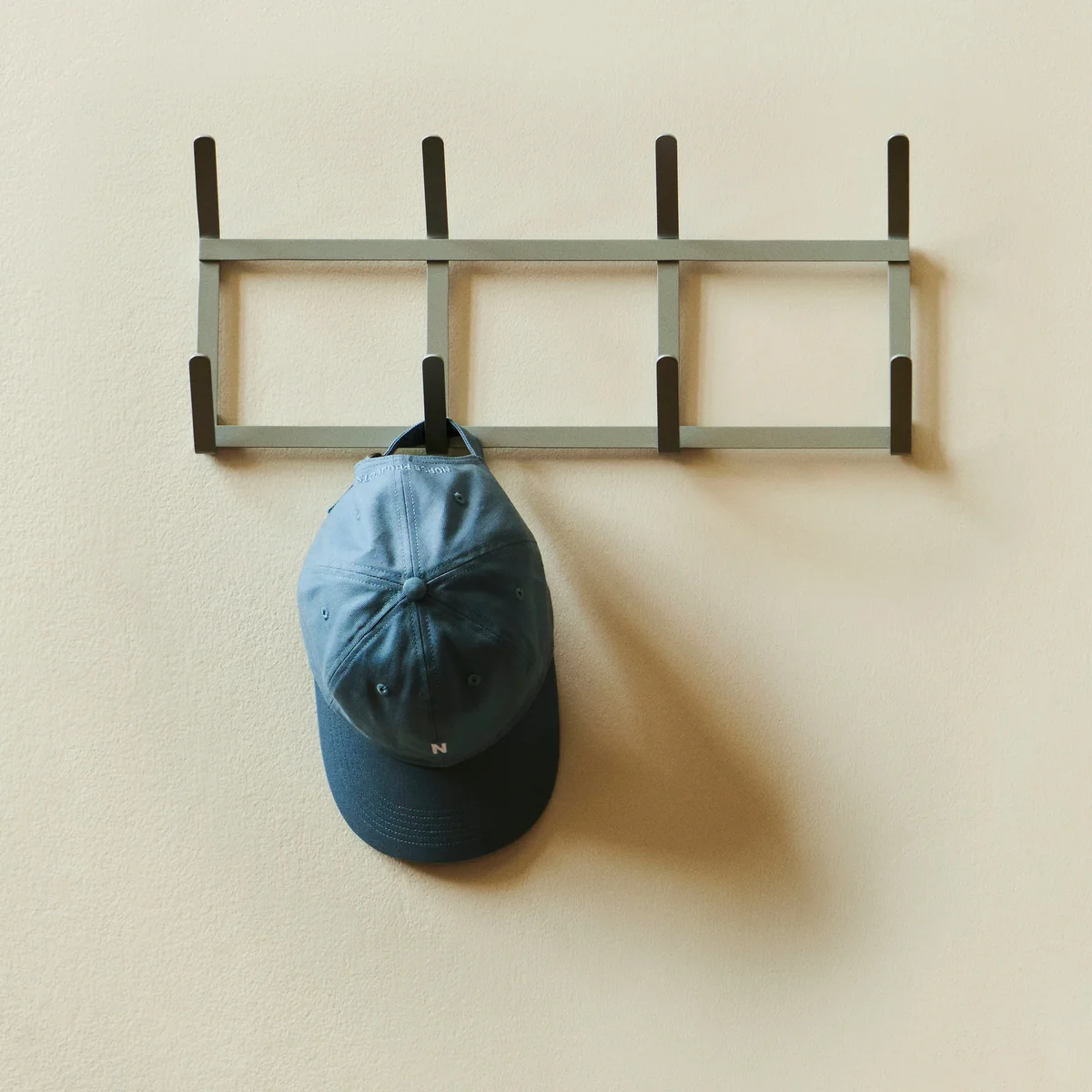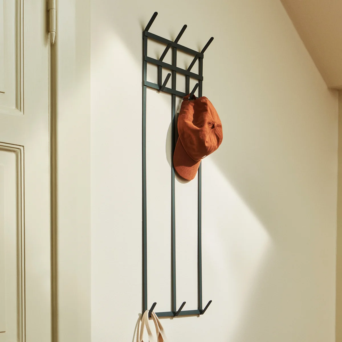 Die Tape Garderobe von BIG-GAME für HAY zeichnet sich durch ein minimalistisches und vielseitiges Design aus, bei dem die gebogenen Stahlstangen in einem Gittermuster angeordnet sind. Sie lässt sich leicht an der Wand befestigen und bietet mehrere Haken in verschiedenen Höhen für optimale Aufhängeoptionen. Das schlichte Design fügt sich nahtlos in Flure, Schlafzimmer und andere Räume im Haus ein.