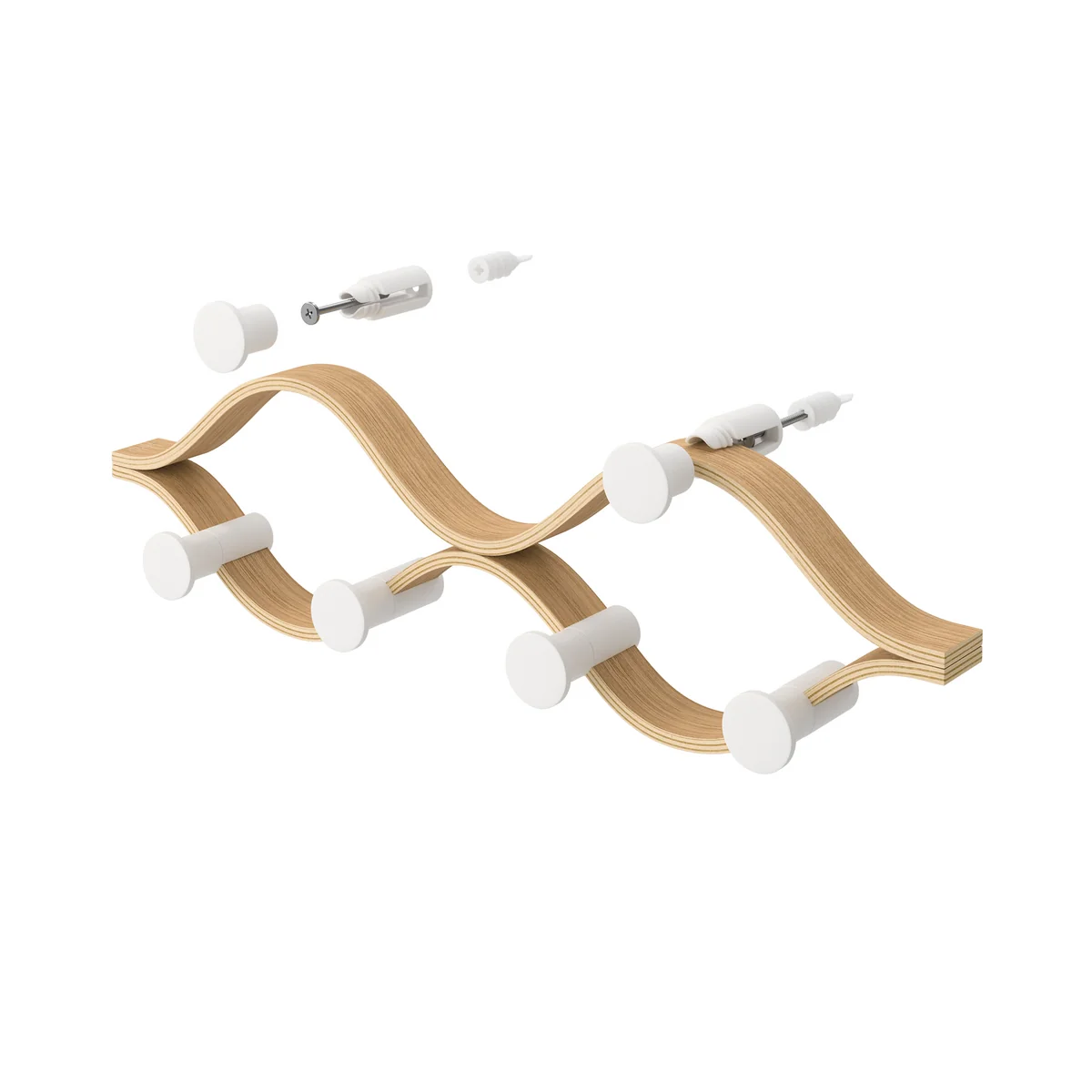 Die Wandgarderobe von Umbra wird mit höchster Sorgfalt und aus einer einzigartigen Materialzusammensetzung gefertigt. Der Großteil besteht aus 60% Gummiholz, das nicht nur für eine ansprechende Optik sorgt, sondern auch für eine hohe Stabilität und Langlebigkeit steht. Die Verwendung von 10% Eschenholz verleiht der Garderobe eine natürliche Note und betont ihre hochwertige Verarbeitung.