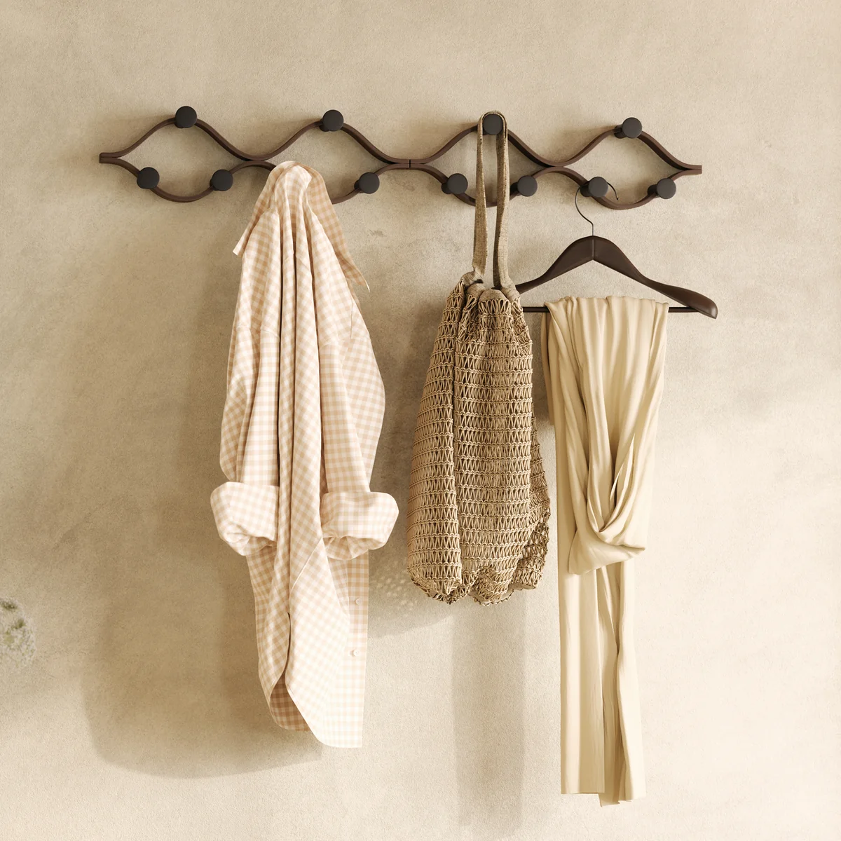 Die klare Linienführung und das moderne Design machen diese Wandgarderobe zu einem Blickfang in jedem Raum. Egal, ob im Eingangsbereich, im Schlafzimmer oder im Büro – sie fügt sich harmonisch in jeden Einrichtungsstil ein. Die einfache Montage ermöglicht eine schnelle und unkomplizierte Befestigung an der Wand.