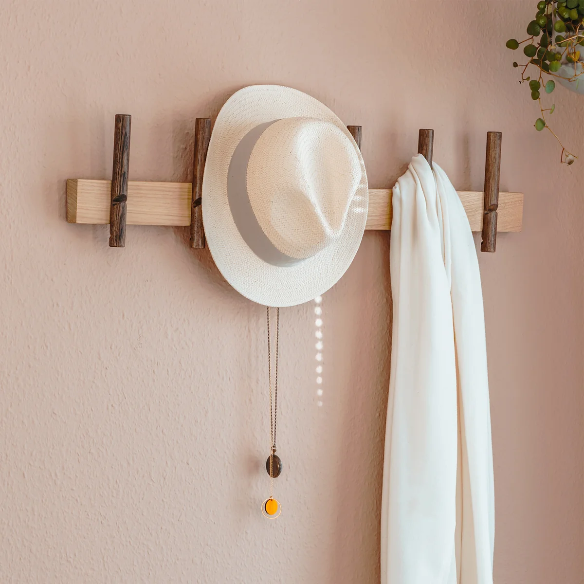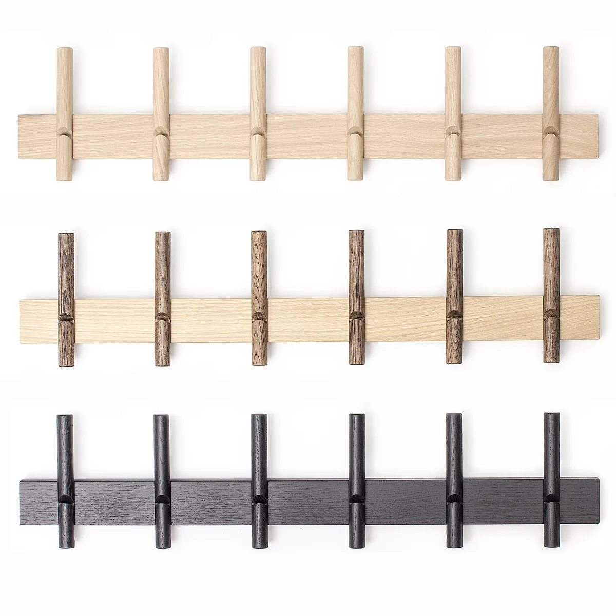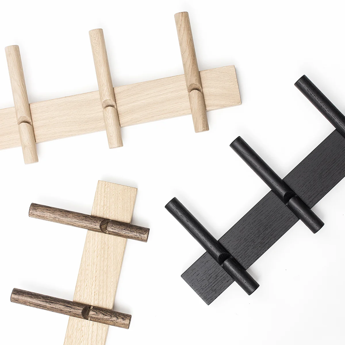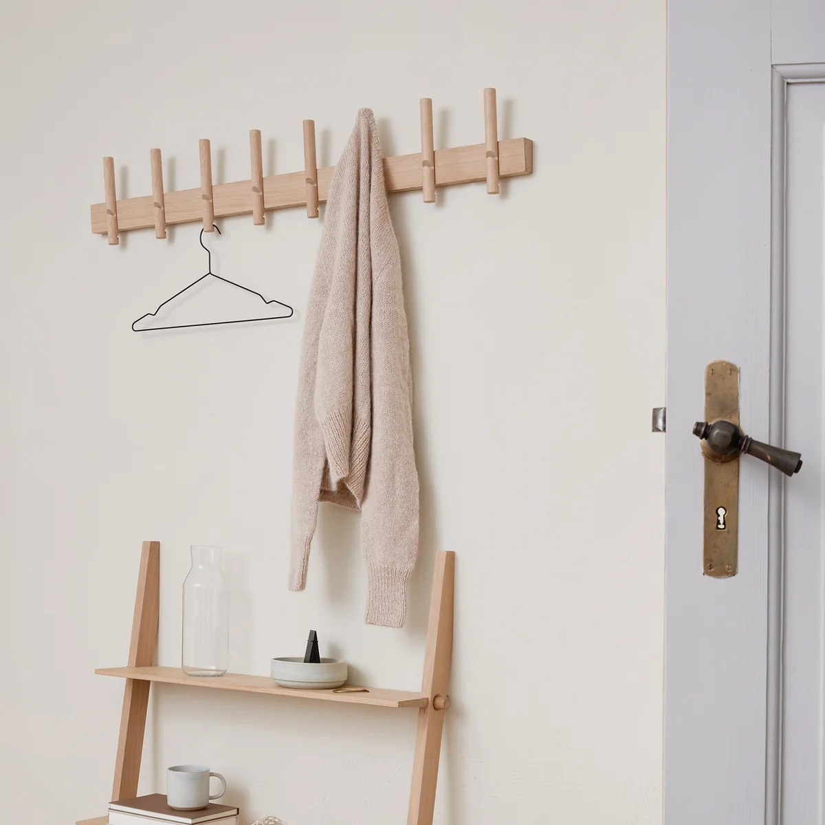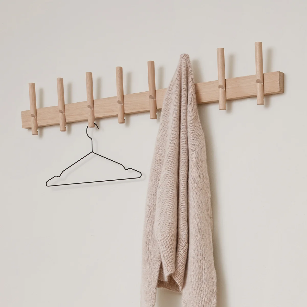 Die Roon & Rahn Reces Wandgarderobe von We Do Wood ist ein rustikales Element, das für mehr Ordnung im Wohnraum sorgt. Mit den einzigartigen, natürlichen Eichenbügeln werden herkömmliche Kleiderhaken ersetzt. Somit wirkt die Wandgarderobe besonders blickfangend und birgt zugleich einen funktionalen Zweck: Die Bügel können mehrere Kleidungsstücke aufnehmen, sodass alle Schals, der liebste Schmuck oder Alltagsessentials untergebracht werden. Die Wandgarderobe ist in unterschiedlichen Ausführungen erhältlich.