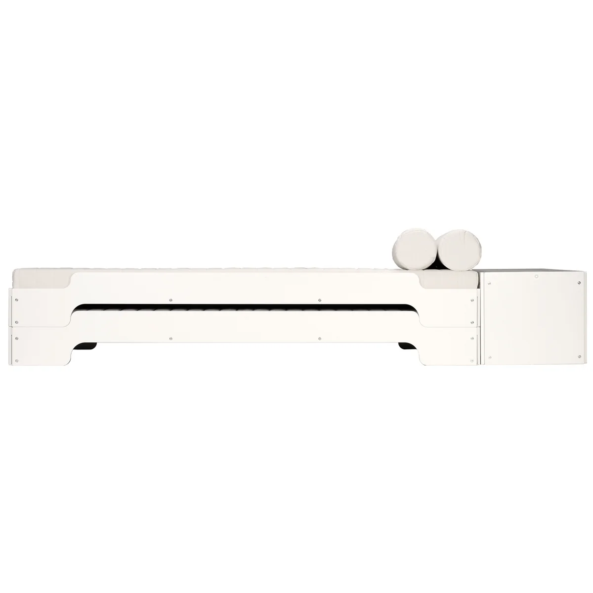 Passend zum zeitlosen Design ist ein umfangreiches Zubehörsortiment zur Stapelliege von Rolf Heide erhältlich, darunter Lattenrost, Bettkasten, Aluminiumablage, Matratzen oder Nackenrollen.