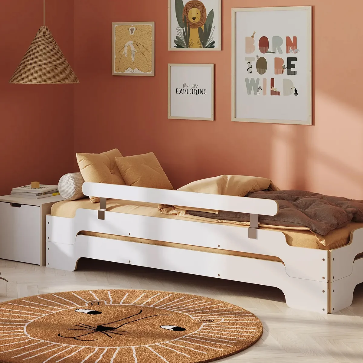 Die Stapelliege eignet sich vorzüglich für kleinere Appartments, Singlewohnungen oder Gästezimmer, da zwei Stapelliegen übereinander gestapelt sehr platzsparend sind und nebeneinander aufgebaut, in Windeseile zu einem stilvollen Doppelbett umfunktioniert werden können.