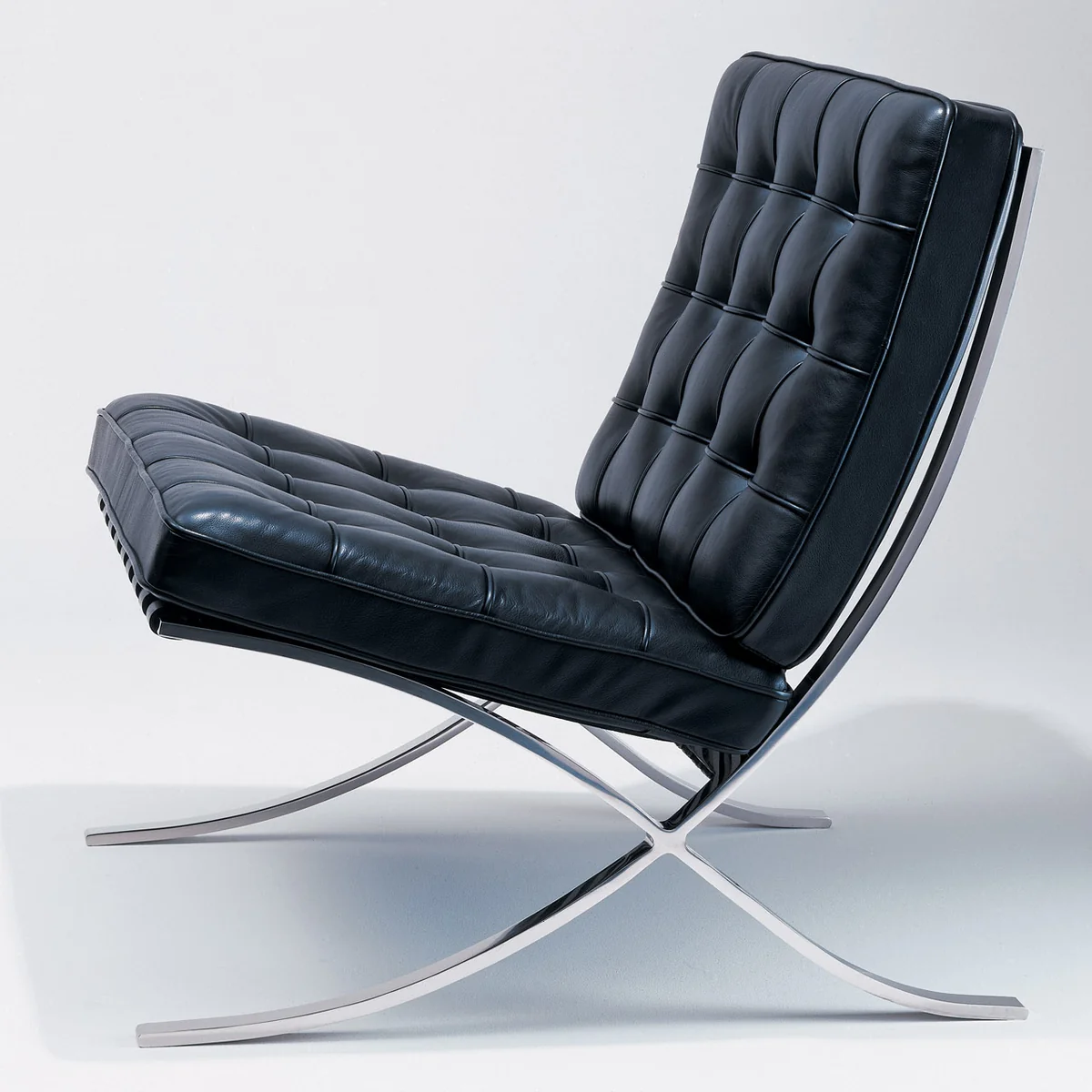 Die Sitzmöbel, die Ende der 20er Jahre für den deutschen Pavillon auf der Weltausstellung in Barcelona entworfen wurden, verdienen den Namen Klassiker. Zum einen, weil das Ensemble des lichten Pavillons den unterkühlten Wohnstil - später „Internationaler Stil“ genannt - weltweit bekannt machte. Zum anderen, weil es historische Bezüge zur Antike gibt. So haben wohl griechische Klappstühle (Scheren- oder Fahrstuhl als Thron für Gottheiten und Herrscher) als Anregung gedient. Es handelt sich also gewissermaßen um einen neuzeitlichen Thron (ohne Klappfunktion).