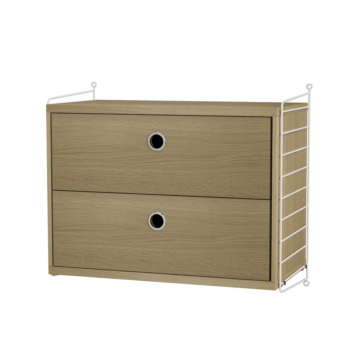 Dank des flexiblen String-Systems kann der Nachttisch individuell angepasst oder erweitert werden, um perfekt zu Ihren Bedürfnissen zu passen. Gefertigt aus hochwertigen Materialien, ist er langlebig und bringt skandinavische Leichtigkeit in Ihr Zuhause.