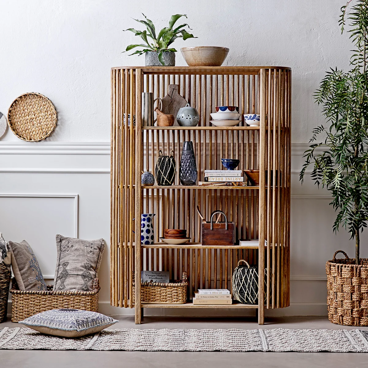 Das Sali Bücherregal von Bloomingville besticht mit seinem außergewöhnlichen Look. Es stammt aus der Creative Collection und wird aus dunkel gebeiztem Mangoholz gefertigt. Das Regal hat vier Einlageböden und bietet somit genügend Platz für Bücher, Vasen und Co. Es kann wunderbar als Raumteiler oder in jeglichen Räumen des Hauses verwendet werden.