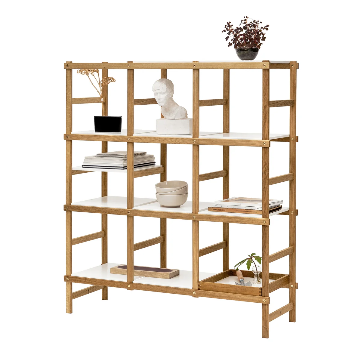 Frame von Harald Hermanrud für Design House Stockholm ist das perfekte Möbelsystem. Er sieht sein Regal weniger als Staumöglichkeit zum Lagern von Gegenständen, sondern eher zum Ausstellen dieser. Frame ist eine physische, dauerhafte und wandelbare Plattform, welche die Menschen ganz individuell in ihrem Zuhause nutzen können. Bücher, Pflanzen, Schallplatten, Vasen - all dies und vieles mehr soll präsentiert werden. Die einzelnen Kisten des Systems können ganz simpel ohne jegliches Werkzeug bewegt werden.