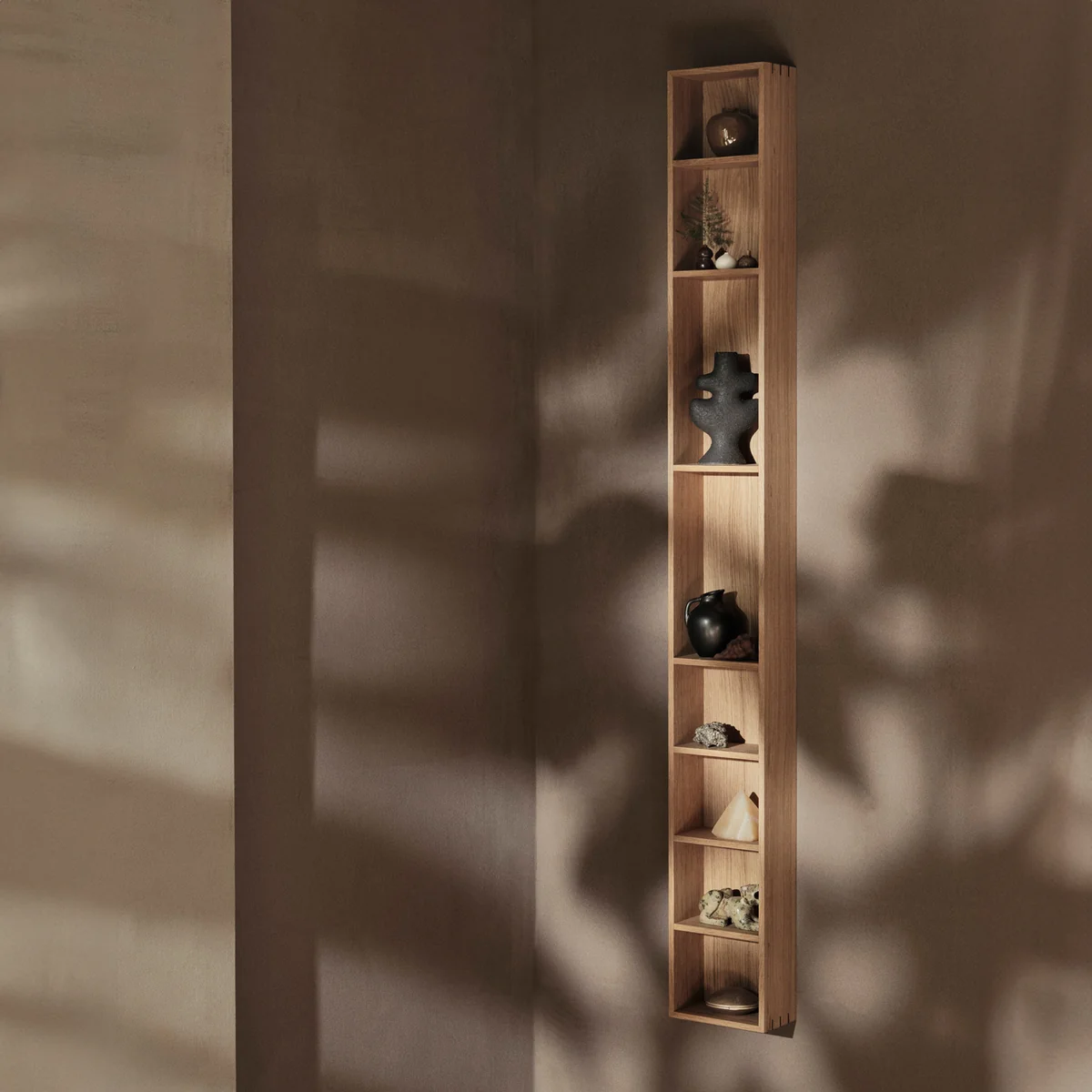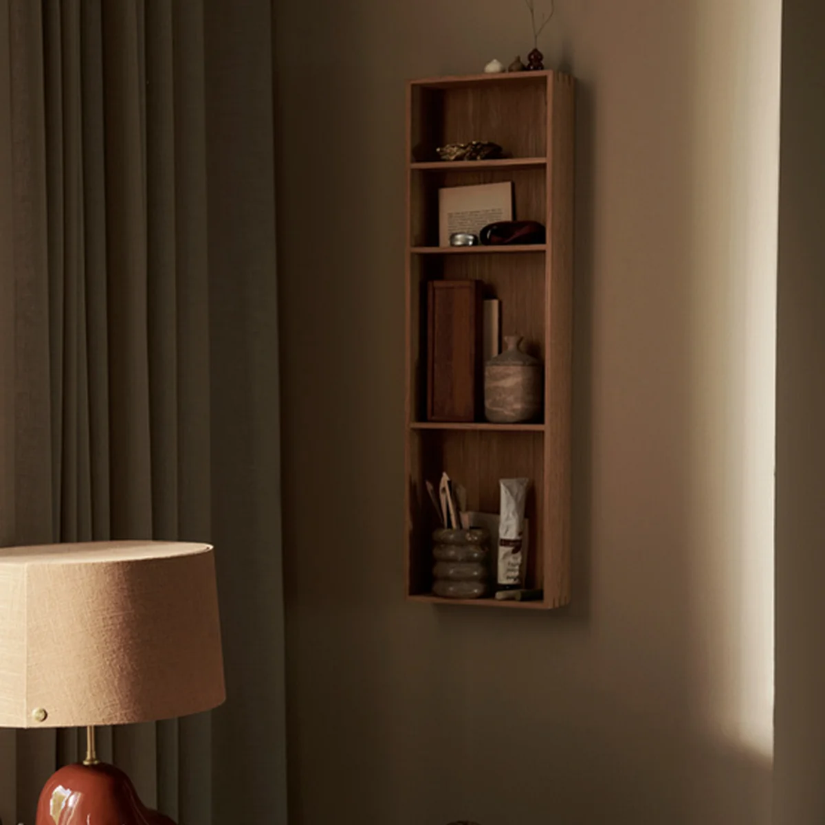 Das Bon Wandregal aus dem Hause Ferm Living ist die ideale Möglichkeit zum Aufbewahren und Präsentieren der Lieblingssachen. Das Design ist von der Liebe zum klassischen Handwerk inspiriert. Das schlanke, elegante Regal verfügt über detaillierte Fugen an den Ecken und wird insgesamt aus Eichenfurnier mit MDF-Kern gefertigt. Bon kann entweder senkrecht oder waagerecht anmontiert werden. Es kann wunderbar in der Küche, im Badezimmer oder ganz beliebig im gesamten Haus anmontiert werden. Bei Bedarf mit einem feuchten Tuch abwischen und mit Öl behandeln.