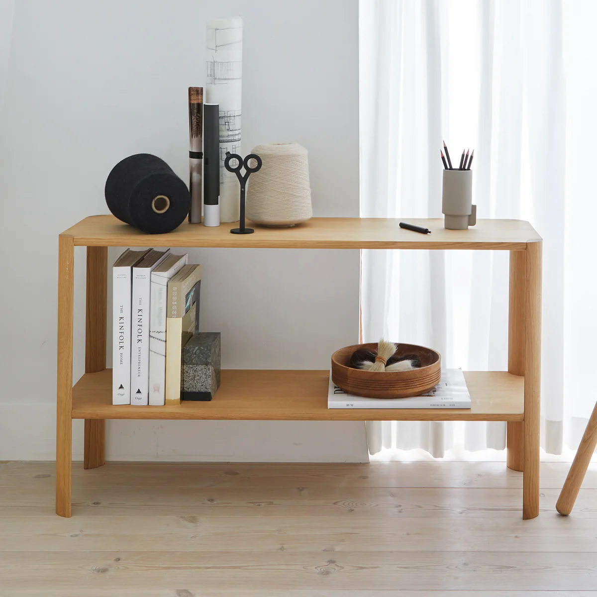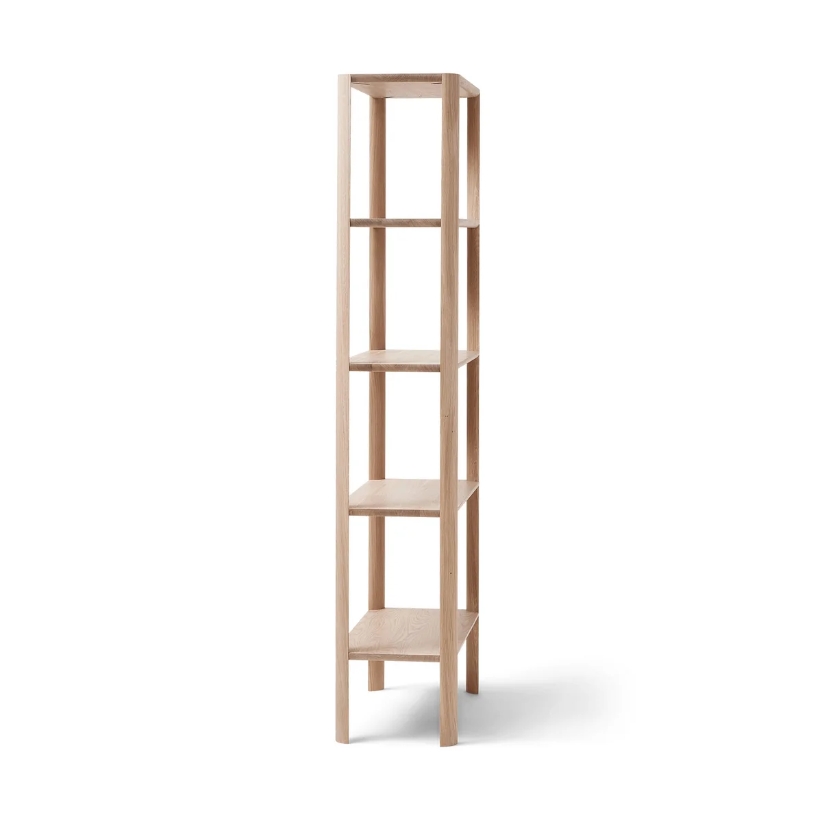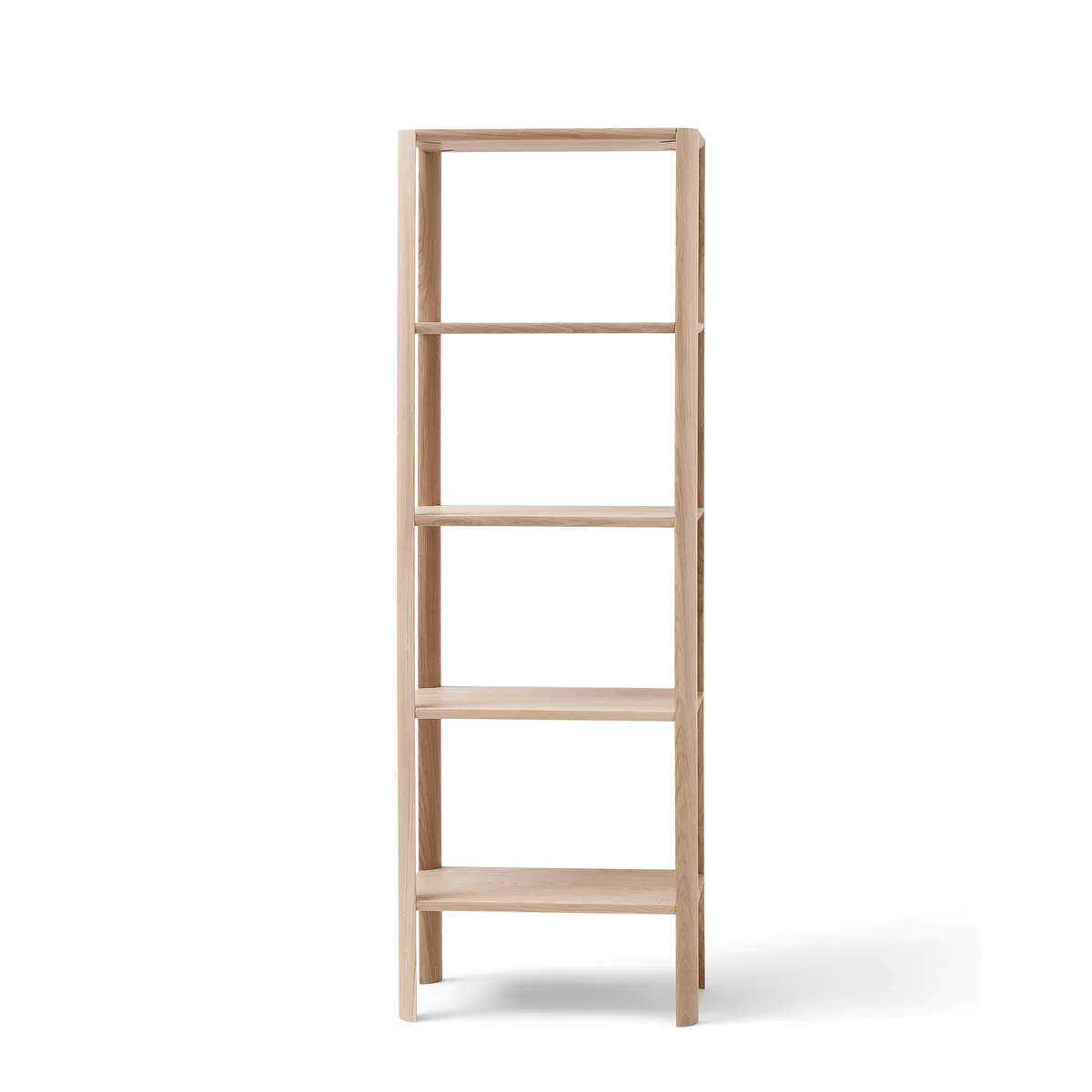 Das Leaf Regal von Form & Refine überzeugt durch seine Verbindung von Ästhetik, Stabilität und Stauraum. Es ist charakterisiert durch seine einfache Form, die die Aufmerksamkeit auf die abgerundeten, blatt-ähnlichen Regalbeine lenkt. Die Konstruktion selbst ist geradlinig ohne sichtbare Schrauben oder zusätzlich stabilisierende Elemente. Sie fügt sich dadurch gut in beliebig eingerichtete Wohnzimmer, Schlafzimmer oder Büros ein und bietet darüber hinaus viel Stauraum für Bücher, Boxen und mehr.