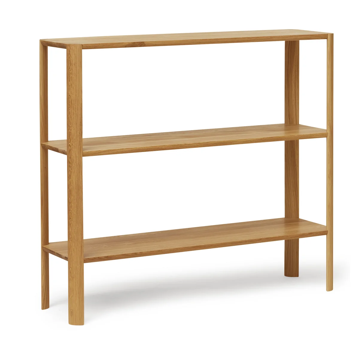 Das Leaf Regal von Form & Refine überzeugt durch seine Verbindung von Ästhetik, Stabilität und Stauraum. Es ist charakterisiert durch seine einfache Form, die die Aufmerksamkeit auf die abgerundeten, blatt-ähnlichen Regalbeine lenkt. Die Konstruktion selbst ist geradlinig ohne sichtbare Schrauben oder zusätzlich stabilisierende Elemente. Sie fügt sich dadurch gut in beliebig eingerichtete Wohnzimmer, Schlafzimmer oder Büros ein und bietet darüber hinaus viel Stauraum für Bücher, Boxen und mehr.