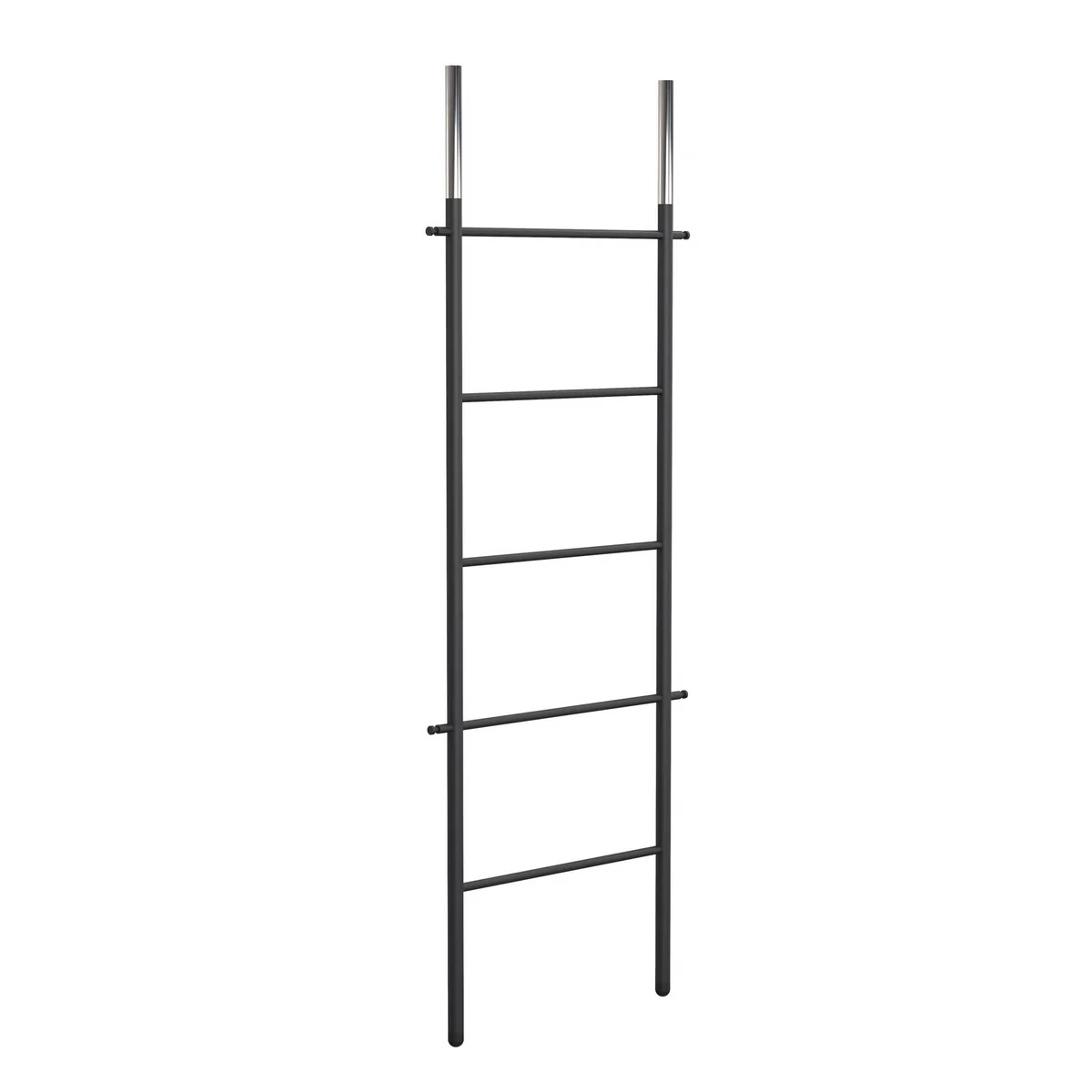 Die Leiter lässt sich ganz einfach an die Wand lehnen und bietet dort einen sicheren Stand. Eine Montage ist nicht notwendig. Je nach Bedarf sind zusätzliche Haken verfügbar, die noch mehr Aufhängemöglichkeiten bieten.