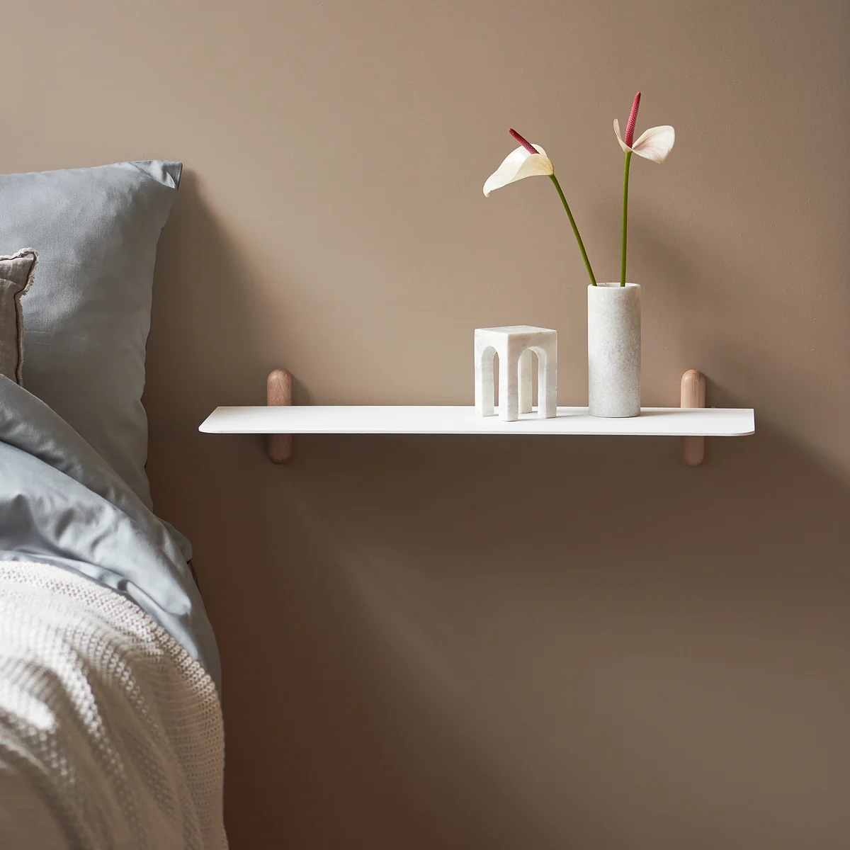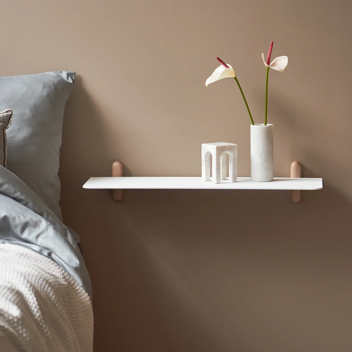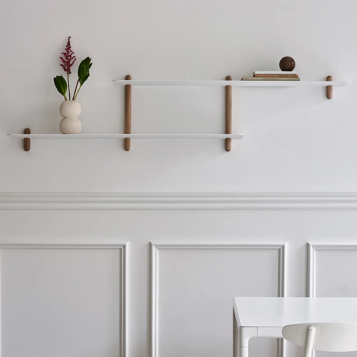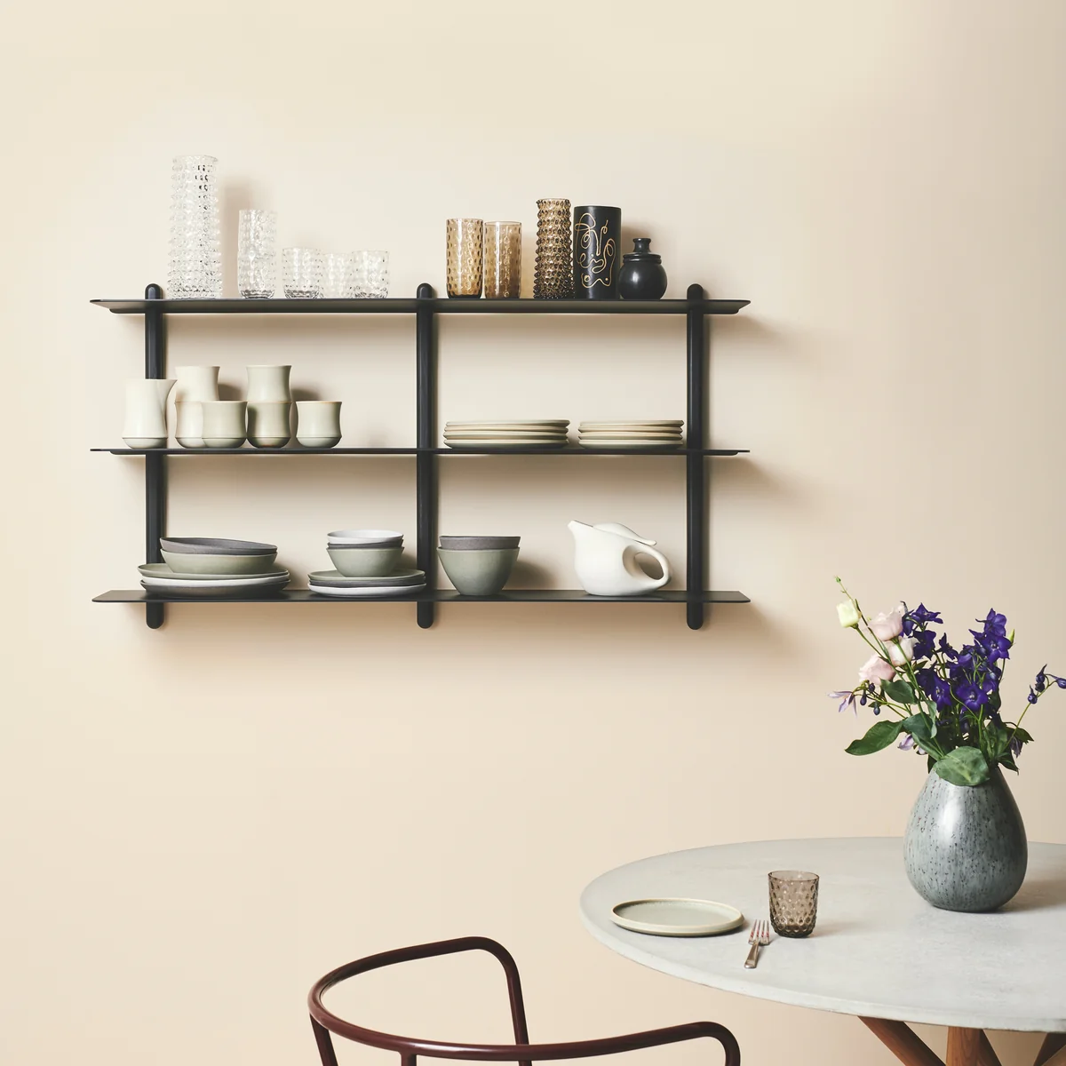 Vasen und Bücher lassen sich in dem Nivo Wandregal hervorragend in Szene setzen. Erhältlich ist das Regal in verschiedenen Farben und Konfigurationen. Die klassische Ausführung kann eine max. Belastung von 3 kg. pro Fachboden tragen, die Variante in Large kann ein Gewicht von bis zu 10 kg tragen.
