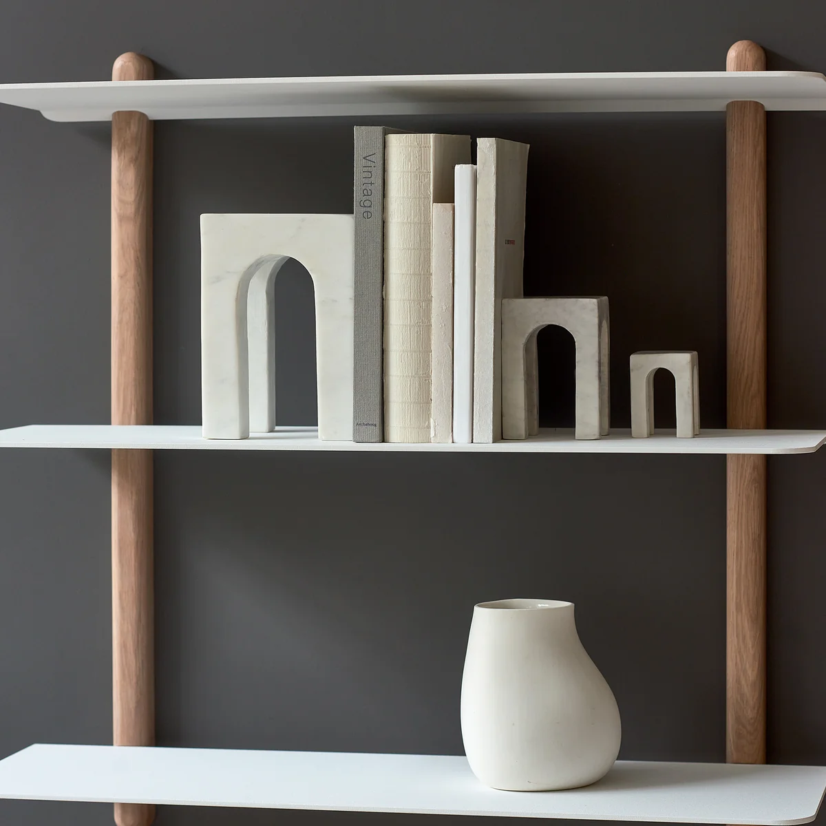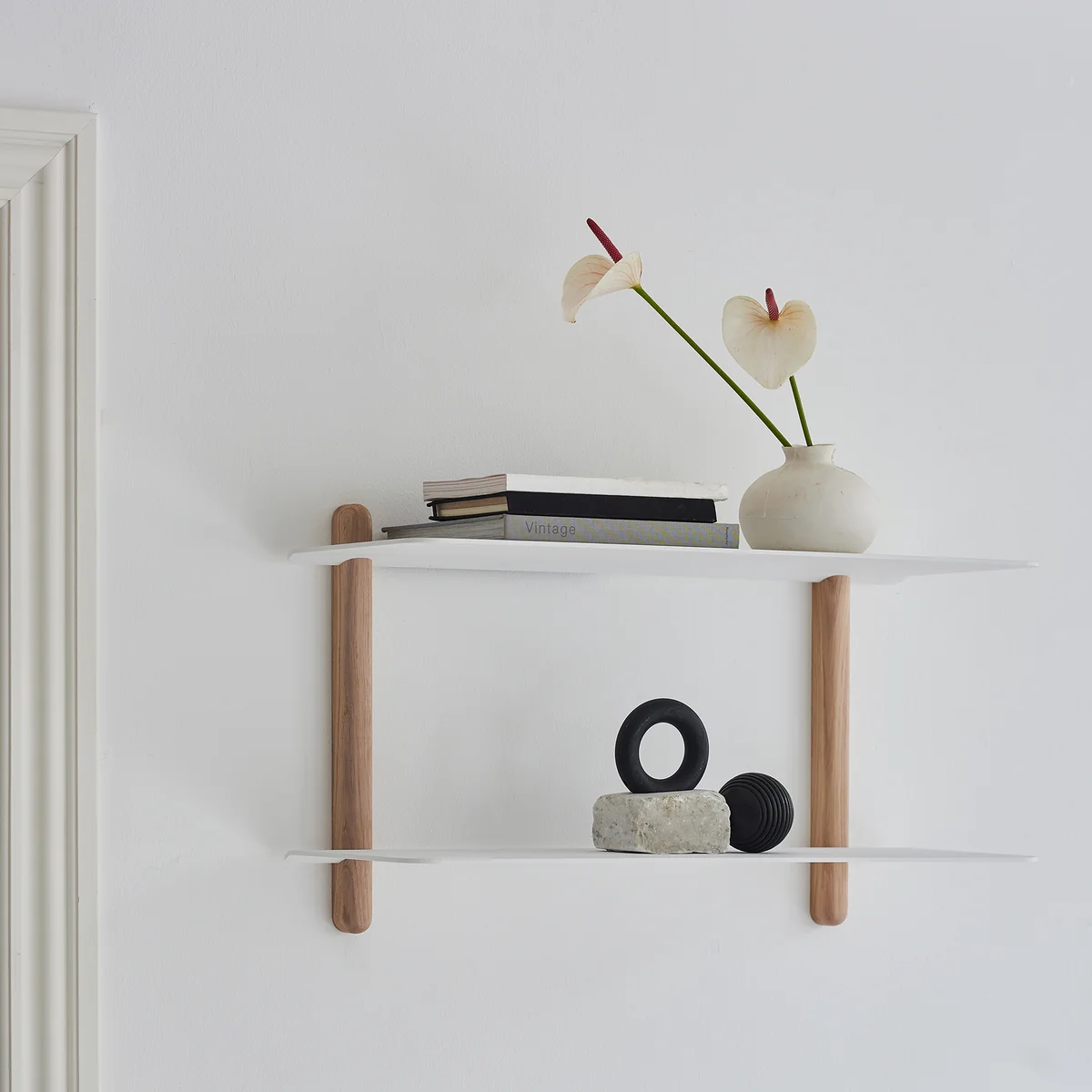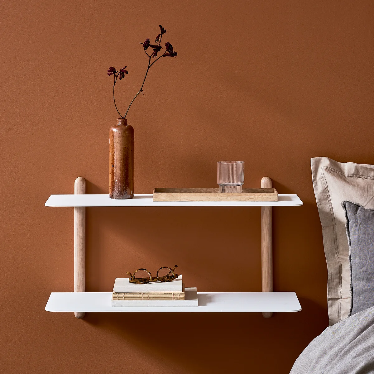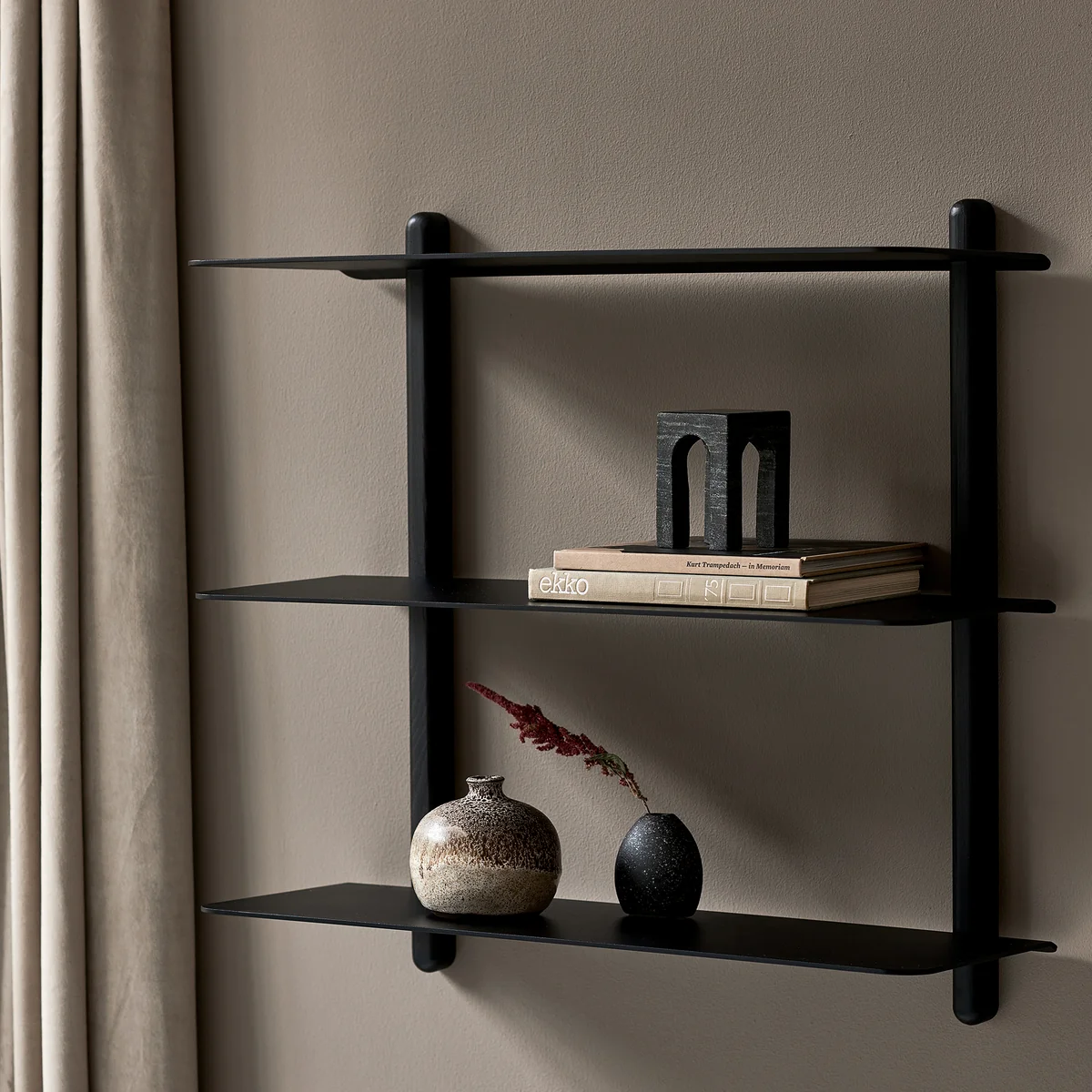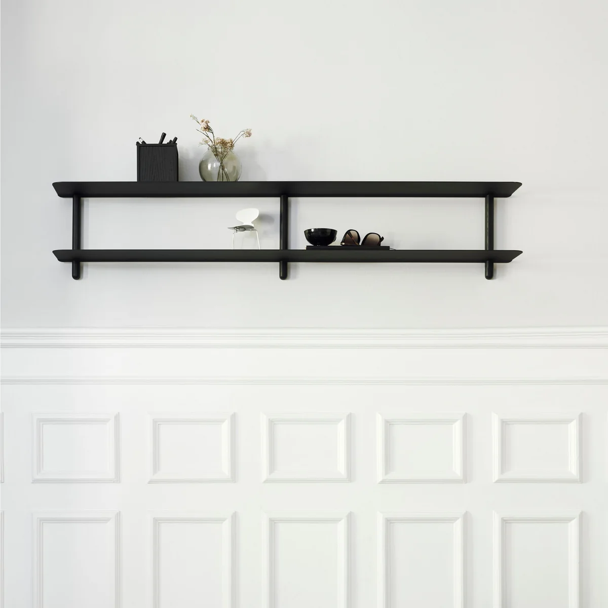 Vasen und Bücher lassen sich in dem Nivo Wandregal hervorragend in Szene setzen. Erhältlich ist das Regal in verschiedenen Farben und Konfigurationen. Die klassische Ausführung kann eine max. Belastung von 3 kg. pro Fachboden tragen, die Variante in Large kann ein Gewicht von bis zu 10 kg tragen.