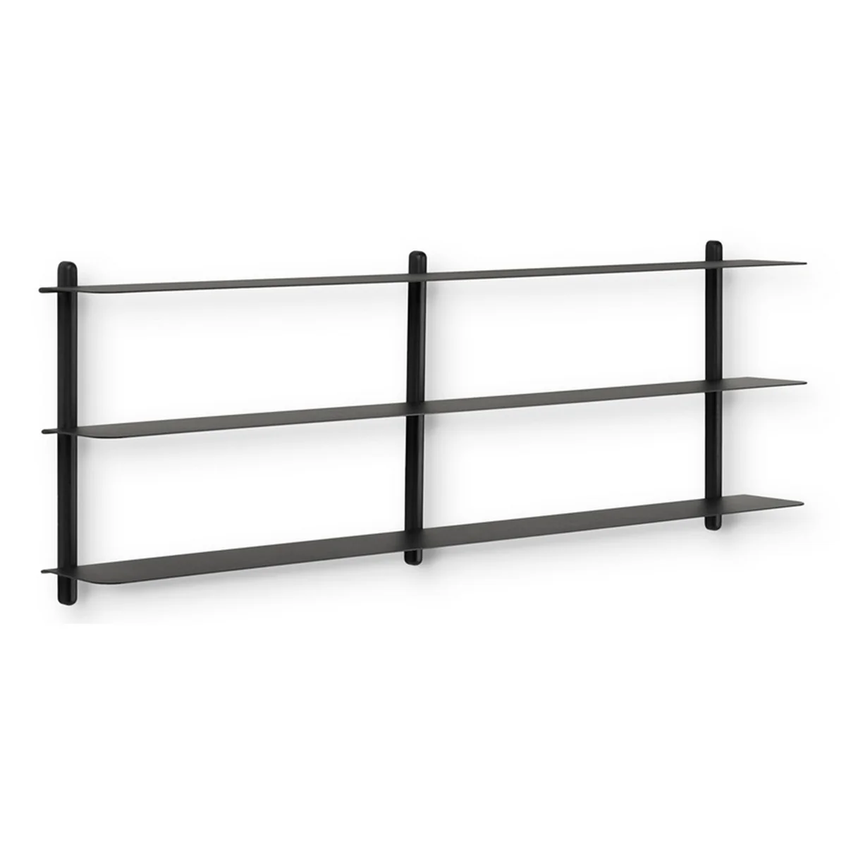 Vasen und Bücher lassen sich in dem Nivo Wandregal hervorragend in Szene setzen. Erhältlich ist das Regal in verschiedenen Farben und Konfigurationen. Die klassische Ausführung kann eine max. Belastung von 3 kg. pro Fachboden tragen, die Variante in Large kann ein Gewicht von bis zu 10 kg tragen.