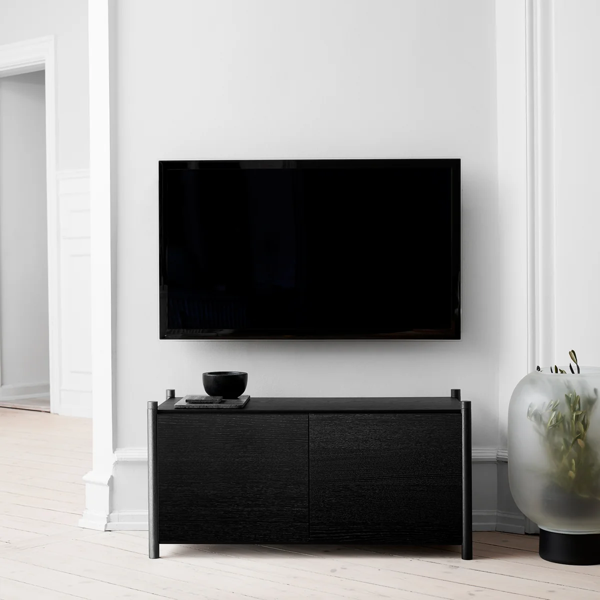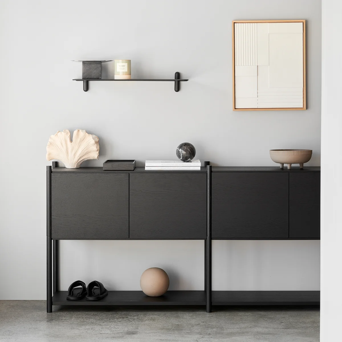 Das Sceene Regalsystem von Michael Rem für Gejst ist ein modulares System, mit dem sich jeder Raum flexibel und individuell gestalten lässt. Modul für Modul kann das Regalsystem nach oben aufgebaut, seitlich erweitert und mit Seitenwänden, Türen oder Rückwänden aus Eichenholz individuell gestaltet werden.