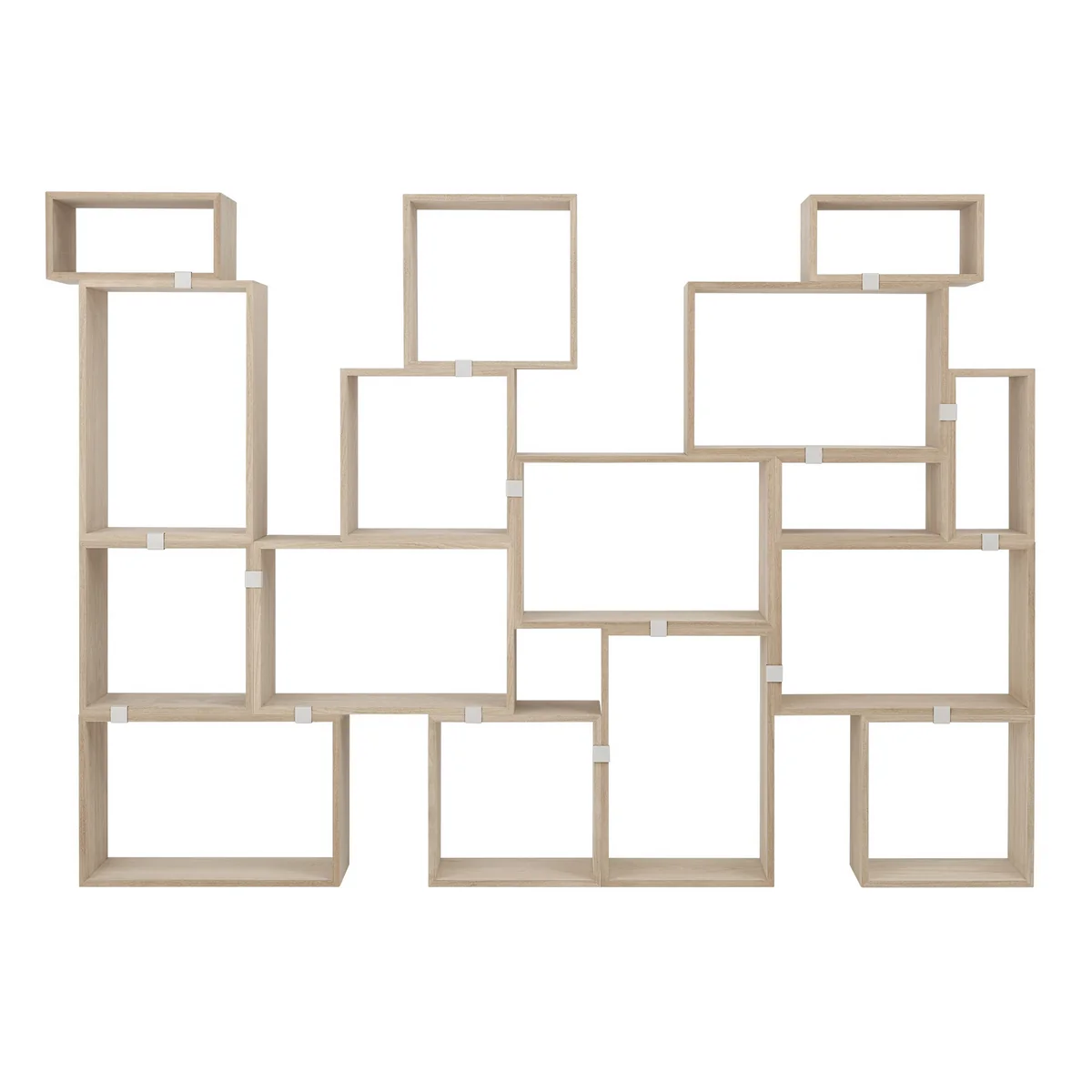 Die Module des Mini Stacked Regalsystems werden aus MDF mit Eichenfurnier hergestellt. Sie sind in verschiedenen Größen und mit Rückwand in verschiedenen Farben erhältlich. Durch die Vielfalt der Module das Mini Stacked Regalsystem individuell zusammengestellt werden und passt sich jedem Geschmack sowie jeder Raumsituation bestens an.