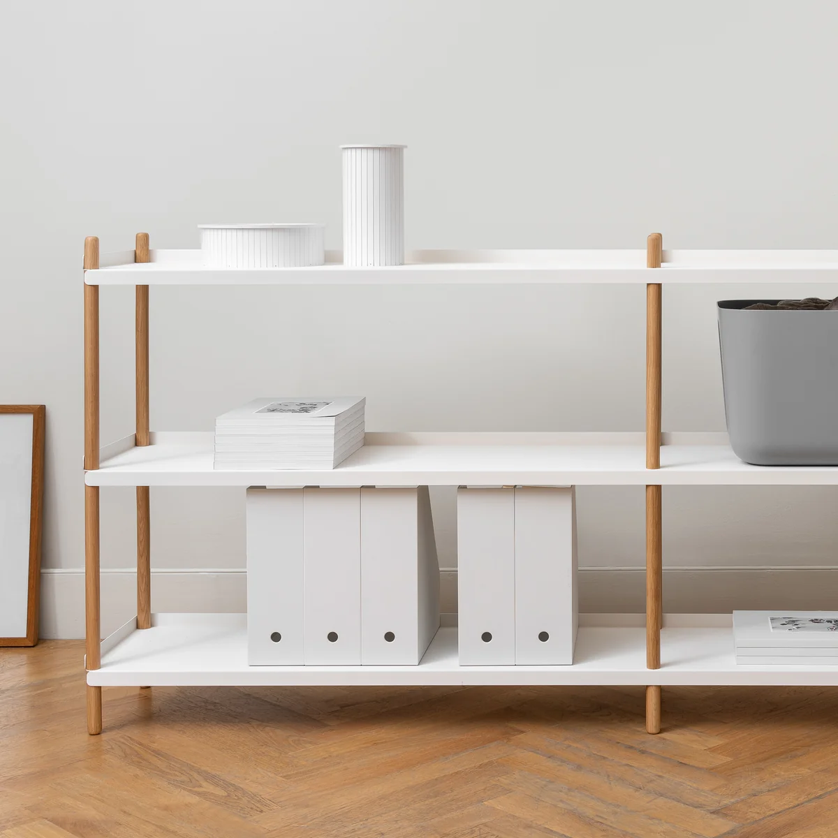 BOLT ist in verschiedenen Größen erhältlich, die von niedrigen Regalen für den Flur oder TV-Elemente bis hin zu größeren, mehrstöckigen Elementen reichen, die sich als Sideboards, Bücherregale, Hauswirtschafts- oder Badezimmerregale eignen.