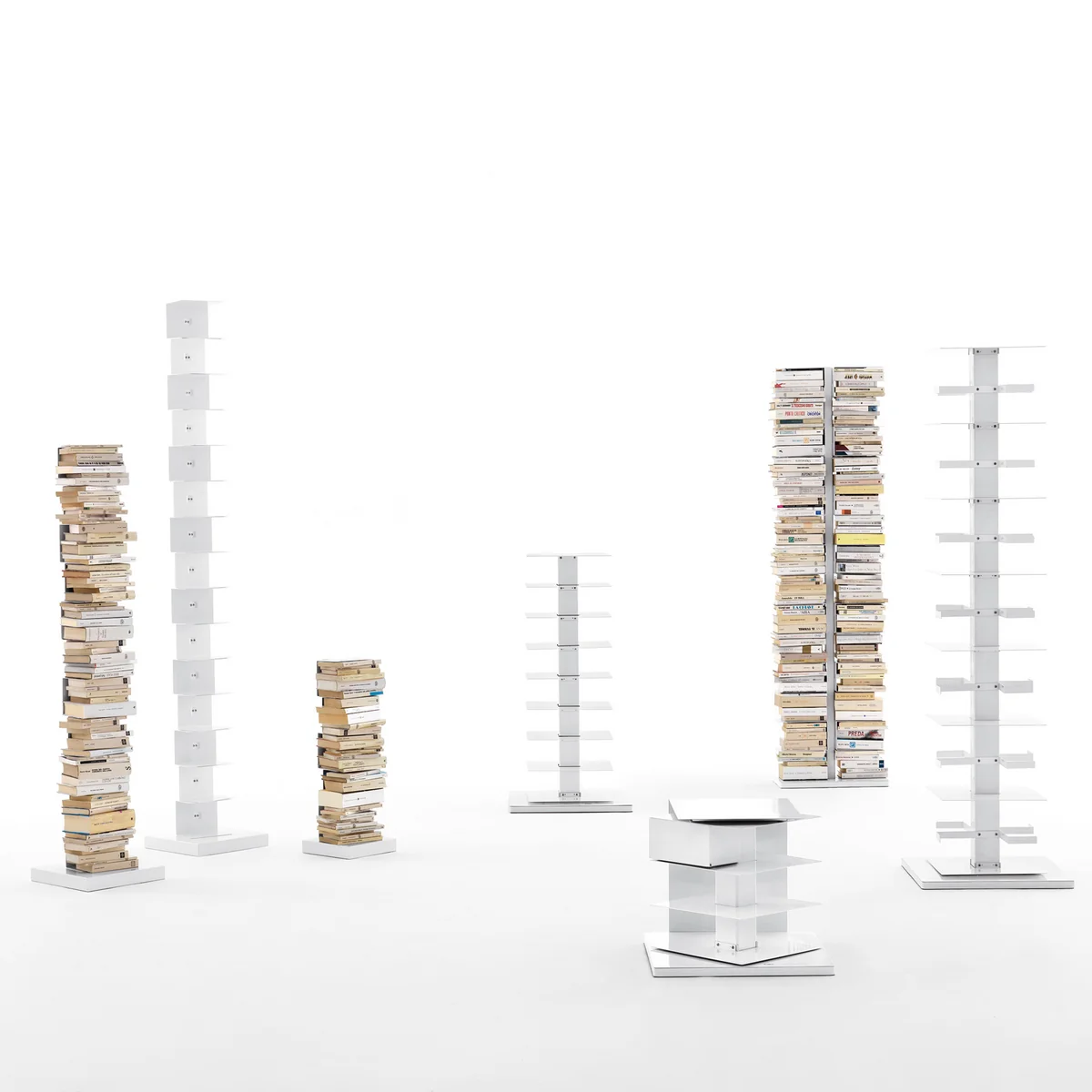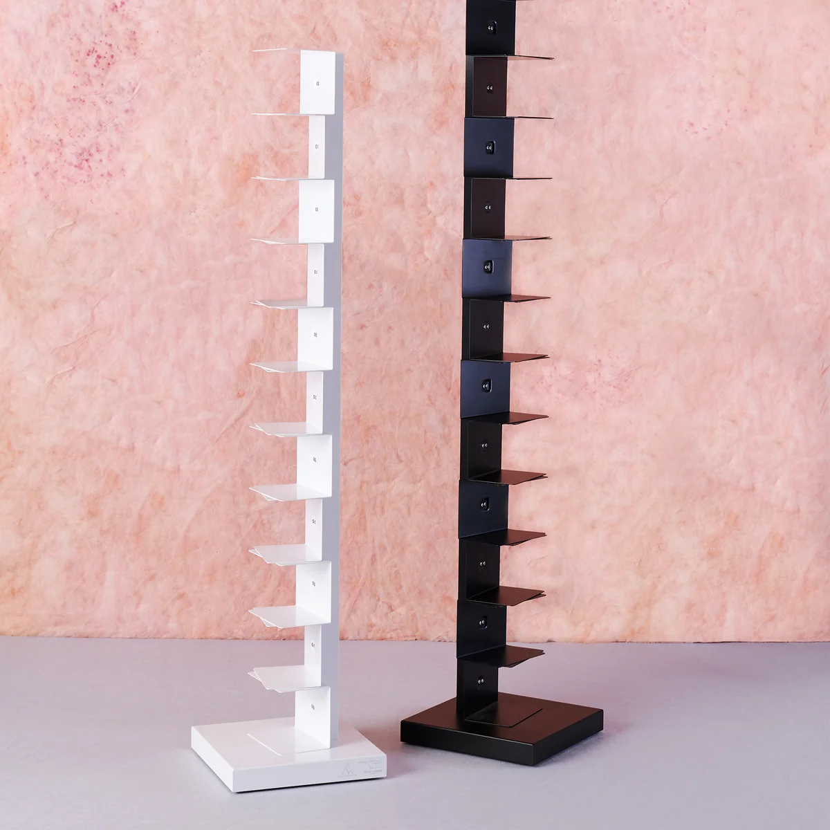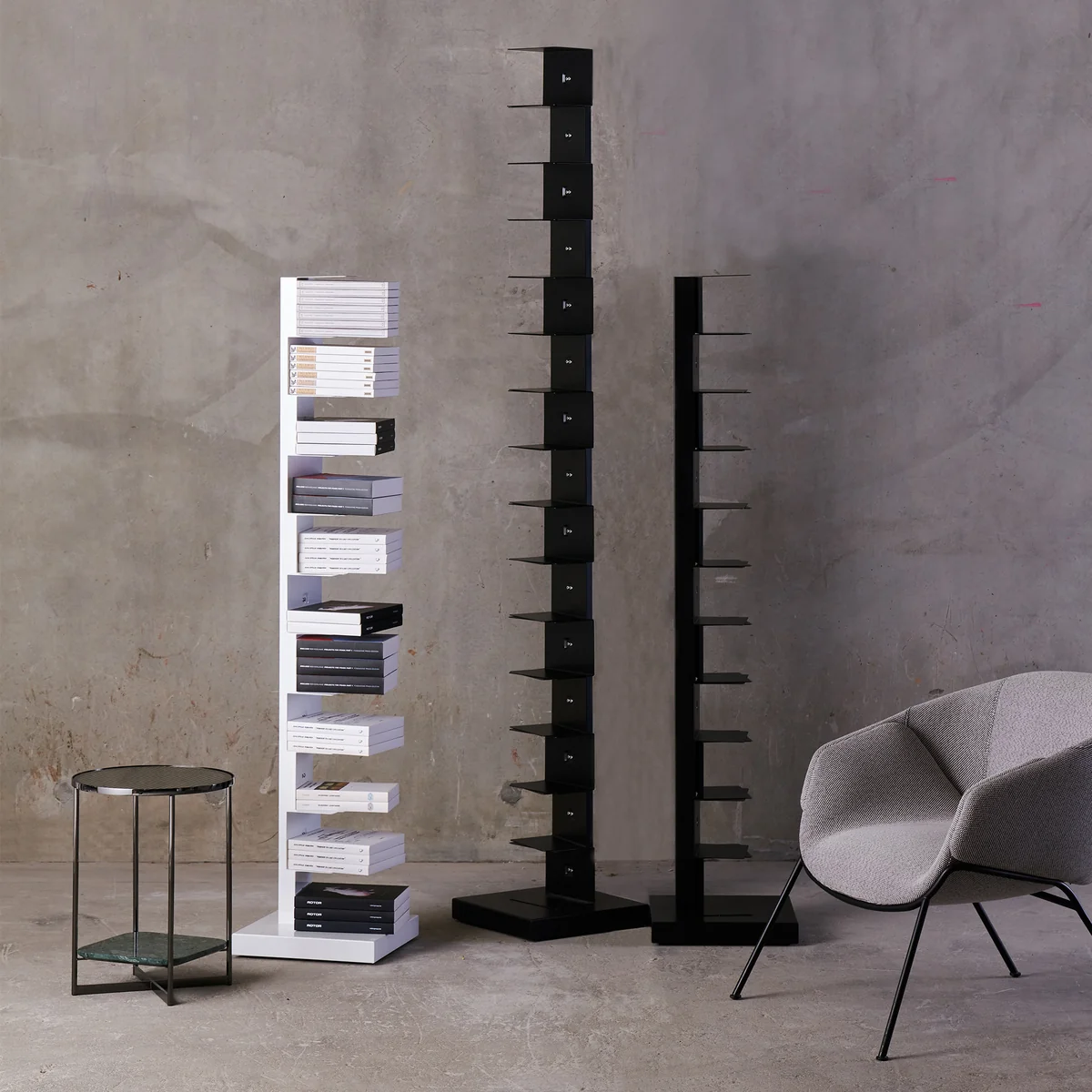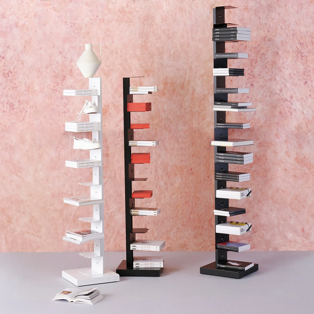 Durch die vertikale Anordnung kann man alle Buchtitel gut lesen und findet schnell das Buch, nach dem man sucht. Das Original Ptolomeo Bücherregal bietet eine neue Sichtweise auf die Büchersammlung und ist zudem in verschiedenen Ausführungen erhältlich. Passend zur Inneneinrichtung kann zwischen einer weißen oder einer schwarzen Version gewählt werden. Zudem gibt es das Original Ptolomeo in drei verschiedenen Größen.