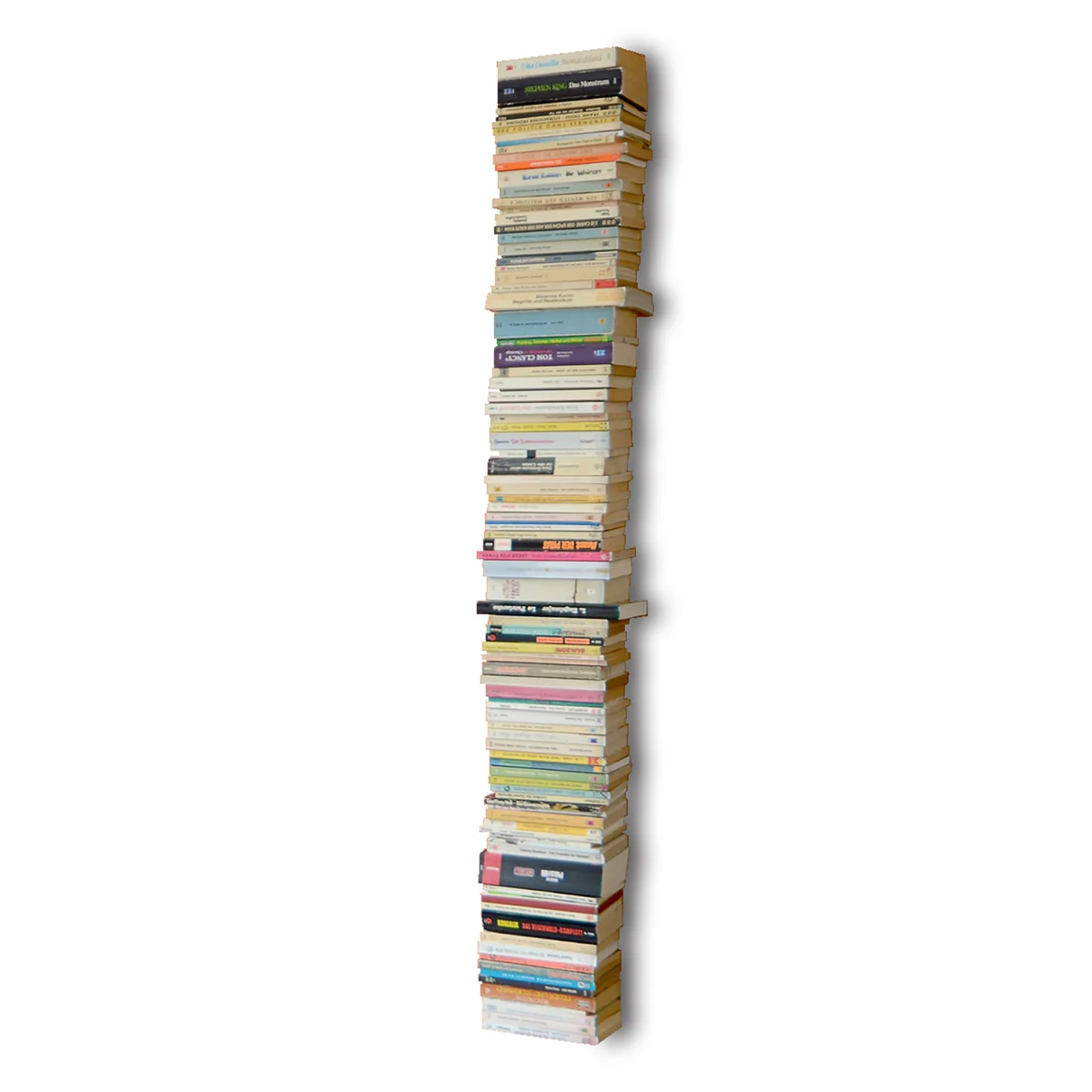 Booksbaum - das Bücherregal von Radius Design. Ihre Bücher scheinen von unsichtbarer Hand gehalten im Raum zu schweben. Durch die unscheinbaren, dünnen Böden wird die Illusion perfekt, denn sie verschwinden unter dem Inhalt. Auch der praktische Nutzen ist groß: Durch die horizontale Anordnung der Bücher sind auch die Titel besser und schneller erkennbar.