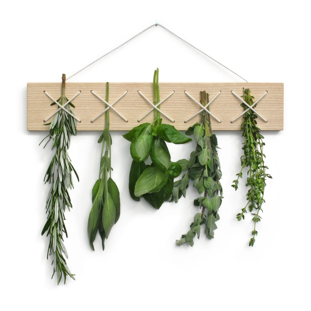 Gefertigt aus unbehandeltem Holz und ausgestattet mit einer naturfarbenen Gummikordel aus Bio-Baumwolle und Naturkautschuk, lassen sich Bündel sicher und luftig kopfüber aufhängen. So behalten Kräuter ihr Aroma, und Blumen oder Gräser trocknen besonders gleichmäßig. Dank der flexiblen Kordel ist das Einhängen und Wechseln der Pflanzen unkompliziert und schnell.