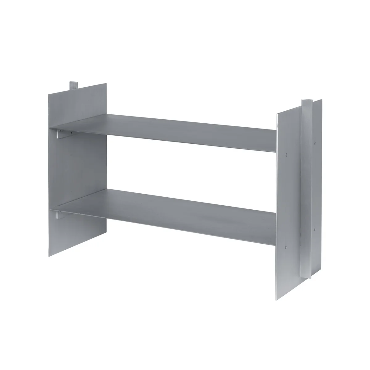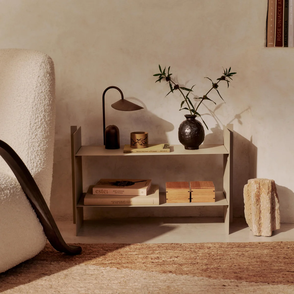 Das Lager Standregal niedrig von Ferm Living kombiniert industrielle Ästhetik mit funktionaler Vielseitigkeit. Inspiriert vom Brutalismus, eignet es sich sowohl als Regal als auch als Schuhregal und ist damit ideal für kompakte Wohnräume. Das minimalistische Design bietet maximalen Stauraum, ohne viel Platz zu beanspruchen. Flach verpackt, leicht zu transportieren und einfach zu montieren, vereint das Lager Niedrigregal praktische Funktionalität mit modernem Stil.
