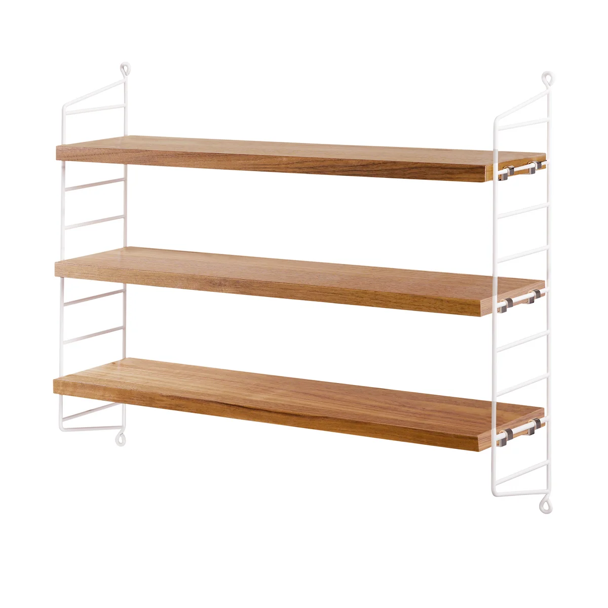 Das String Pocket Regal von Nisse Strinning lässt sich mit anderen Regalen kombinieren und sowohl nach oben als auch zur Seite ausbauen. Bodenleitern sind für dieses Regal nicht erhältlich. Im Lieferumfang enthalten sind zwei Seitenelemente zur Wandmontage und drei passenden Fachböden.