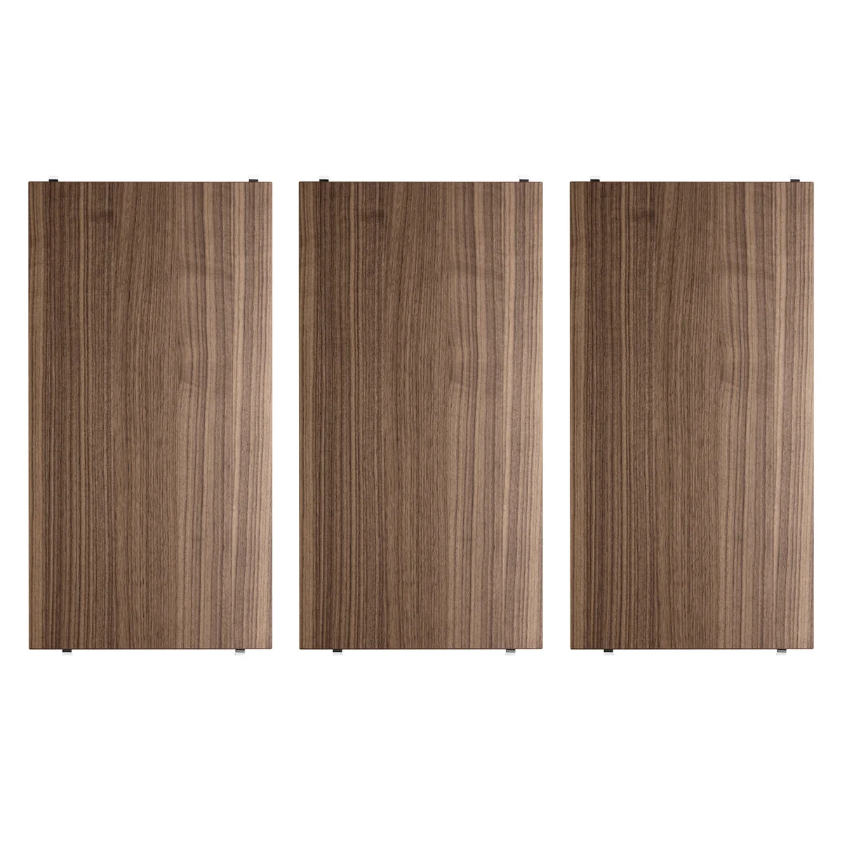 Alle Bodenelemente des String Regalsystems Walnuss gibt es auch in anderen Furnierausführungen wie Birke natur oder Eiche natur, sowie MDF schwarz oder MDF weiß lackiert. Die Seitenelemente aus Stahl sind in weiß, schwarz oder grau erhältlich. Um Durchbiegung zu vermeiden, wird eine gleichmäßig verteilte Belastung von max. 15 kg pro 78 cm breitem Regalboden und 20 kg pro 58 cm breitem Regalboden empfohlen.
