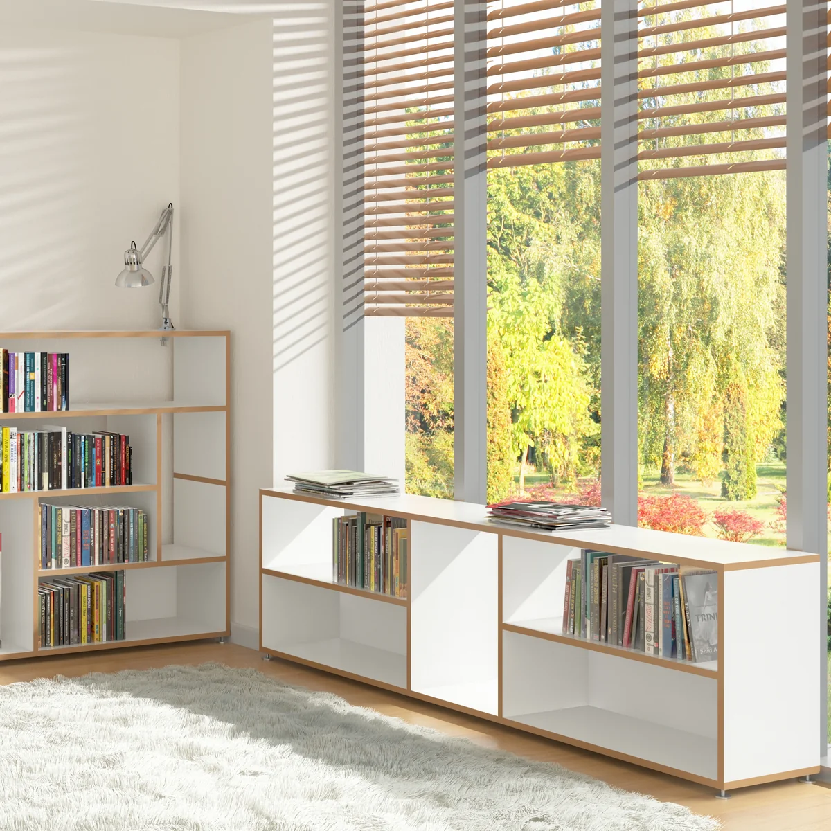 Die Einzelteile des Hanibal Regals werden einfach aufeinander gestapelt und durch einen raffinierten Mechanismus, ganz ohne Schrauben, fixiert. In unterschiedlichen Größen ist das Tojo Regal für unterschiedlichste Raumkonzepte erhältlich: als offene Schranklösung für das Büro oder die Bibliothek, sowie als Low- oder Sideboard für das Wohnzimmer.