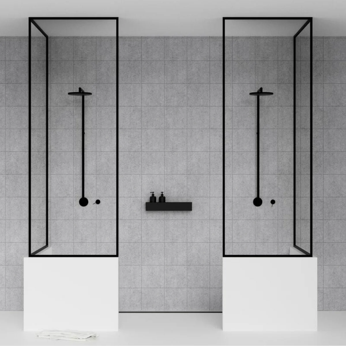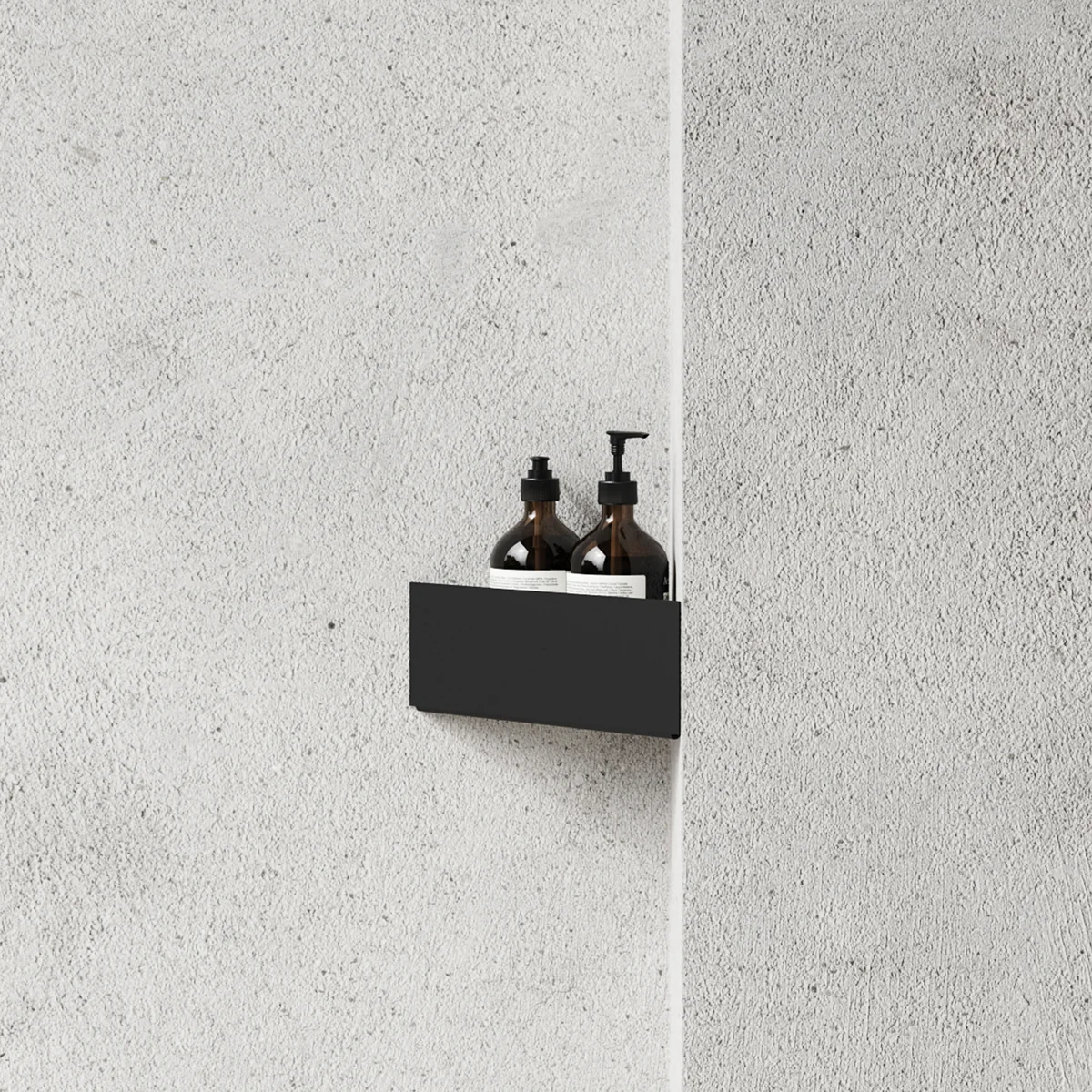In weiß und schwarz erhältlich gehört die Wandablage in verschiedenen Größen zu einer Serie an Badezimmerprodukten im schlichten, zeitlosen Design von Nichba Design.