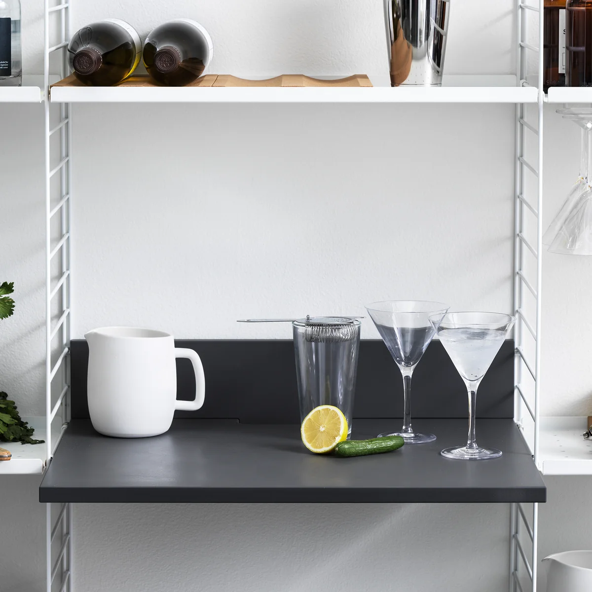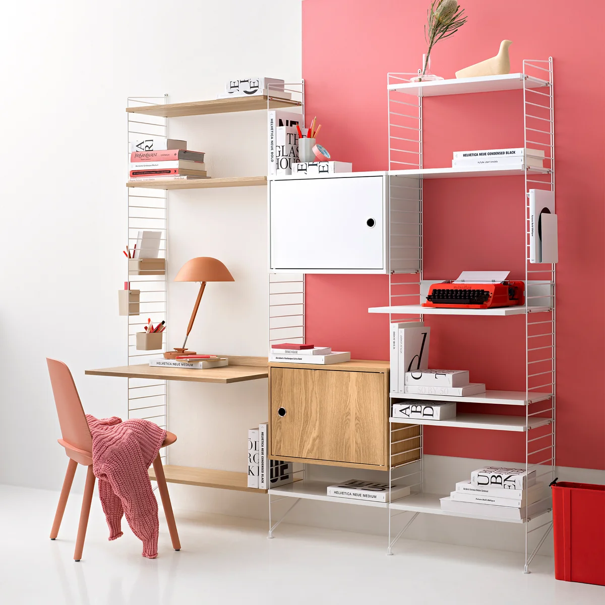 Das Medien-Regal von String ist die optimale Unterbringung für Stereo-Anlagen, CD-Player und Schallplattenspieler: Auf dem flachen Fach lässt sich der Spieler abstellen. An der Wandseite befindet sich eine Aussparung, durch die die Kabel gezogen werden können. So lässt sich das Soundsystem edel und ohne nerviges Kabel-Chaos präsentieren. Das Medien-Regal ist, wie alles am Pocket Regal von String, aber nicht bloß auf diesen Zweck beschränkt- es lässt sich ebenso gut im Wohnzimmer als Kaffeetisch oder im Schlafzimmer als Deko-Fläche verwenden. Entworfen wurde es von – Anna von Schewen and Björn Dahlström.