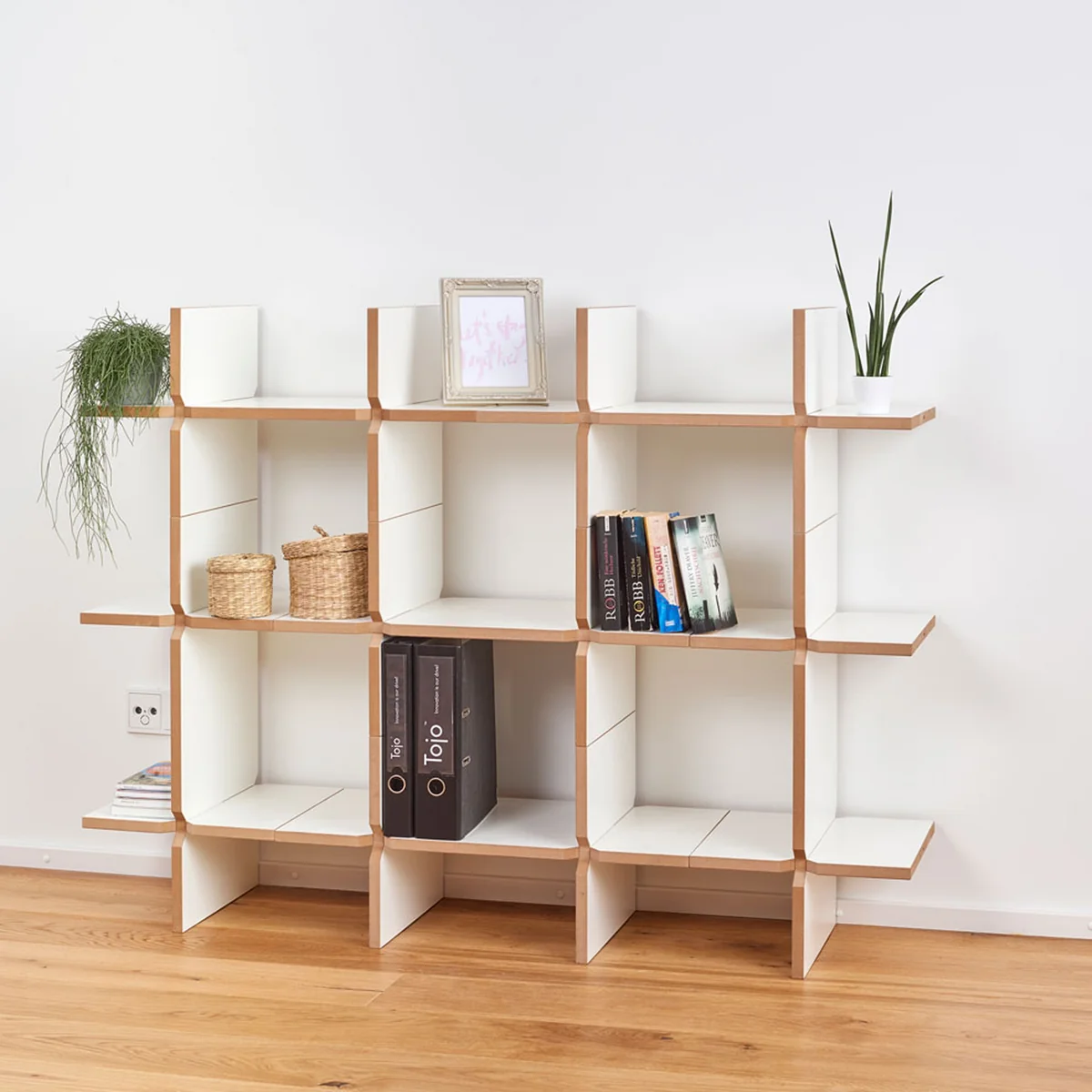 Die Elemente werden horizontal und vertikal einfach ineinander gesteckt, wodurch eine äußerst stilvolle und stabile Einheit entsteht.