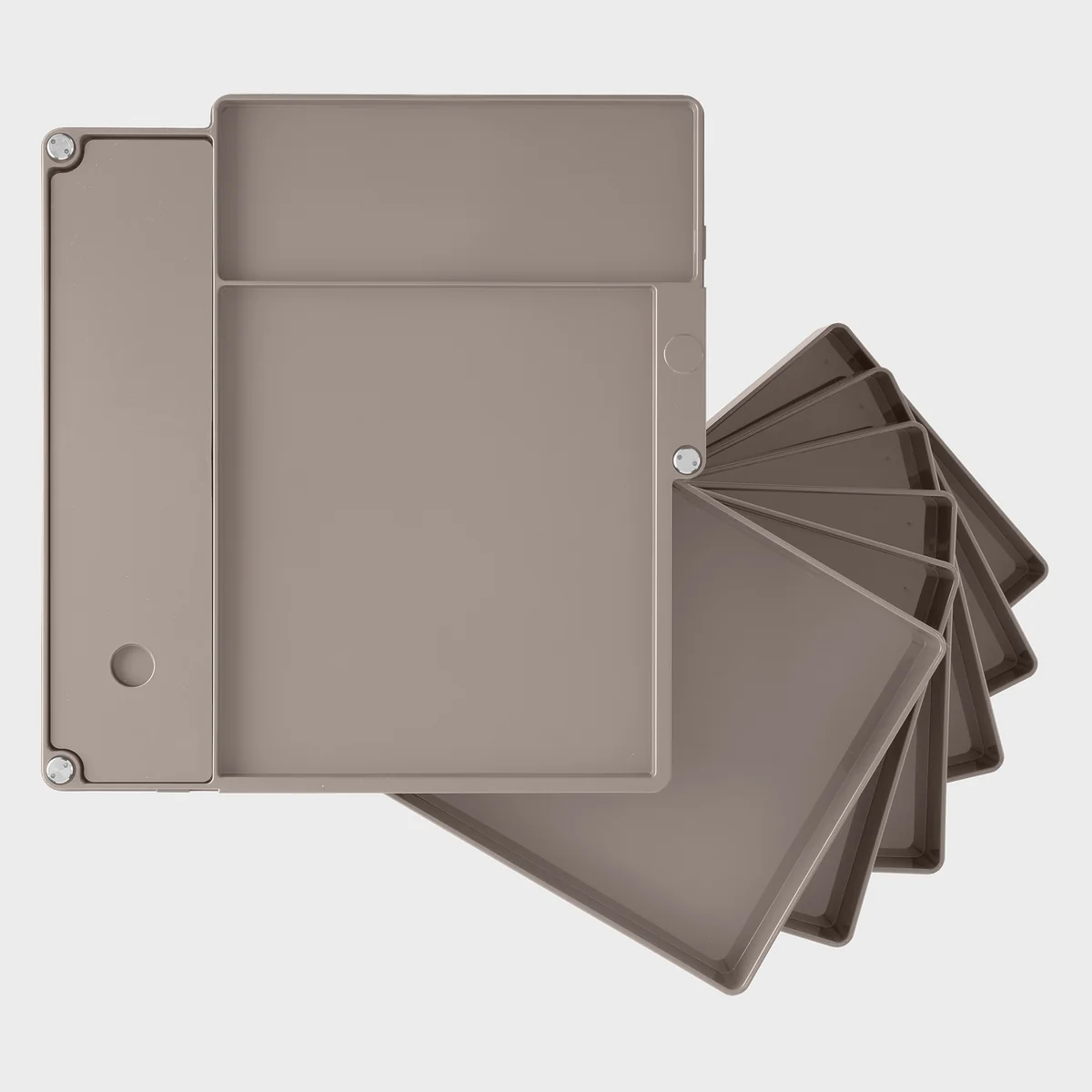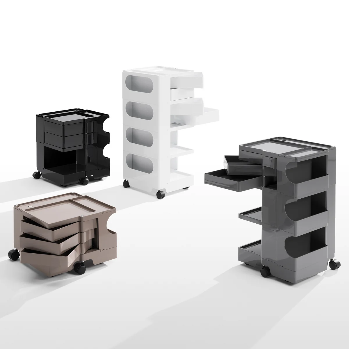 Joe Collombo's Rollcontainer besteht aus leicht zu reinigendem, spritzgegossenen ABS-Kunststoff, er findet im Hobbykeller oder in der Profi-Werkstatt, im Frisiersalon, in Ladengeschäften oder im Badezimmer gleichermaßen Verwendung.