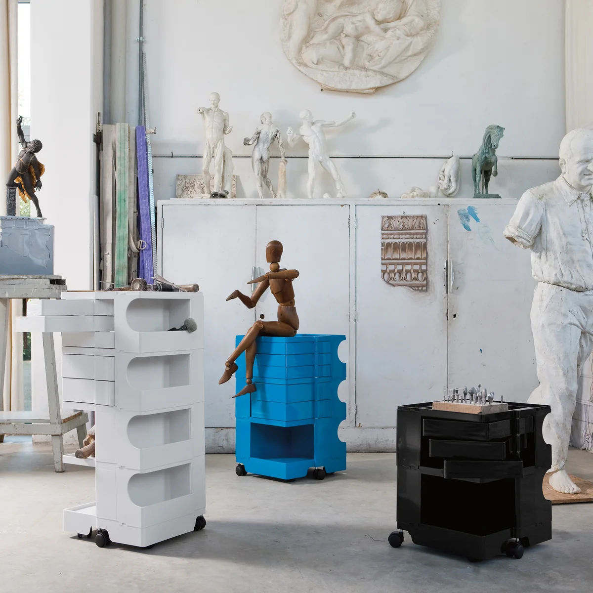 Joe Colombo´s Boby Rollcontainer, eine schöne und praktische Lösung für alle Bereiche in denen Ordnung gebraucht wird, ob Kleinteile oder Papiere im Haushalt, in der Werkstatt oder im Büro. Joe Collombo's Trolley von B-Line hält die Dinge in Ordnung.