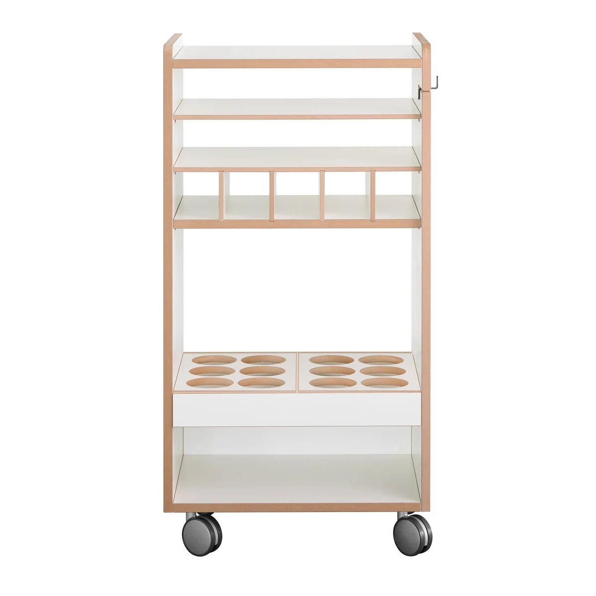 Der Fahrbar Rollwagen von Tojo ist ein vielseitiges Möbelstück, das durch Funktionalität und modernes Design überzeugt. Mit seiner flexiblen Nutzung eignet sich der Rollwagen ideal als mobiler Arbeitsplatz, praktische Kaffeestation, rollende Bar oder Aufbewahrungslösung für Büro- und Küchenutensilien, Spielsachen oder Hobbyzubehör. Dank seiner Rollen ist der Tojo-fahrbar leicht zu bewegen und passt sich mühelos unterschiedlichen Anforderungen an.