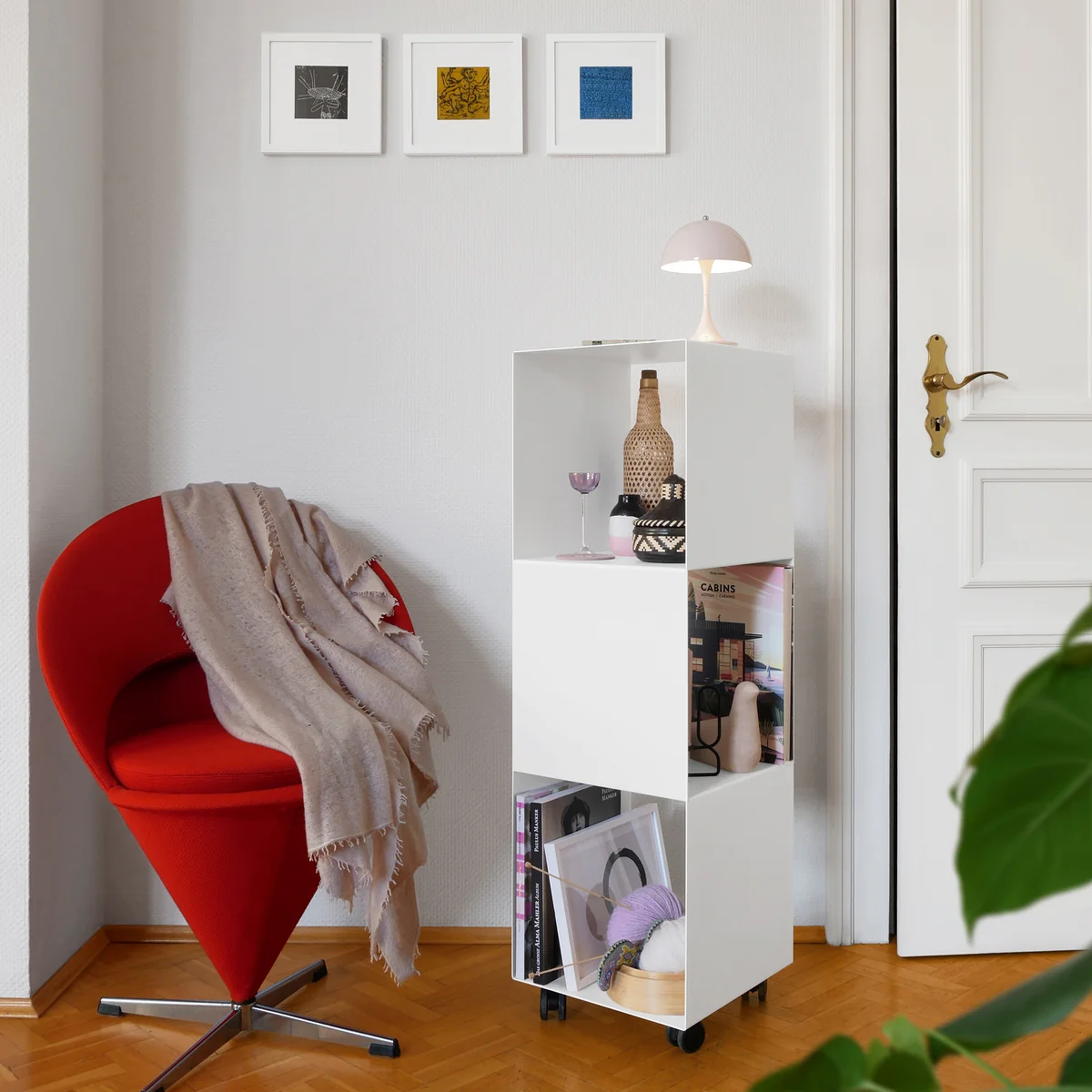 Der 2side Rolltainer von vonbox ist ein vielseitiger und flexibler Container, der sich sowohl für den Einsatz im Büro als auch in privaten Wohnräumen ideal eignet. Mit seinem durchdachten Design ermöglicht er einen bequemen Zugriff von allen Seiten, ohne störende Rückwände, was zahlreiche Nutzungs- und Gestaltungsmöglichkeiten eröffnet. Die robusten Rollen gewährleisten eine sichere Bewegung auf unterschiedlichen Bodenbelägen wie Parkett und Teppich, wodurch der 2side Rolltainer mühelos an jeden gewünschten Ort verschoben werden kann. Er bietet ausreichend Platz für bis zu 12 breite Aktenordner und kombiniert dabei Funktionalität mit einem modernen, stilvollen Erscheinungsbild. In Wohnräumen können die großzügigen Fächer individuell dekoriert und gestaltet werden, was den 2side Rolltainer zu einem echten Allrounder macht. Ein Highlight für jedes Interieur!