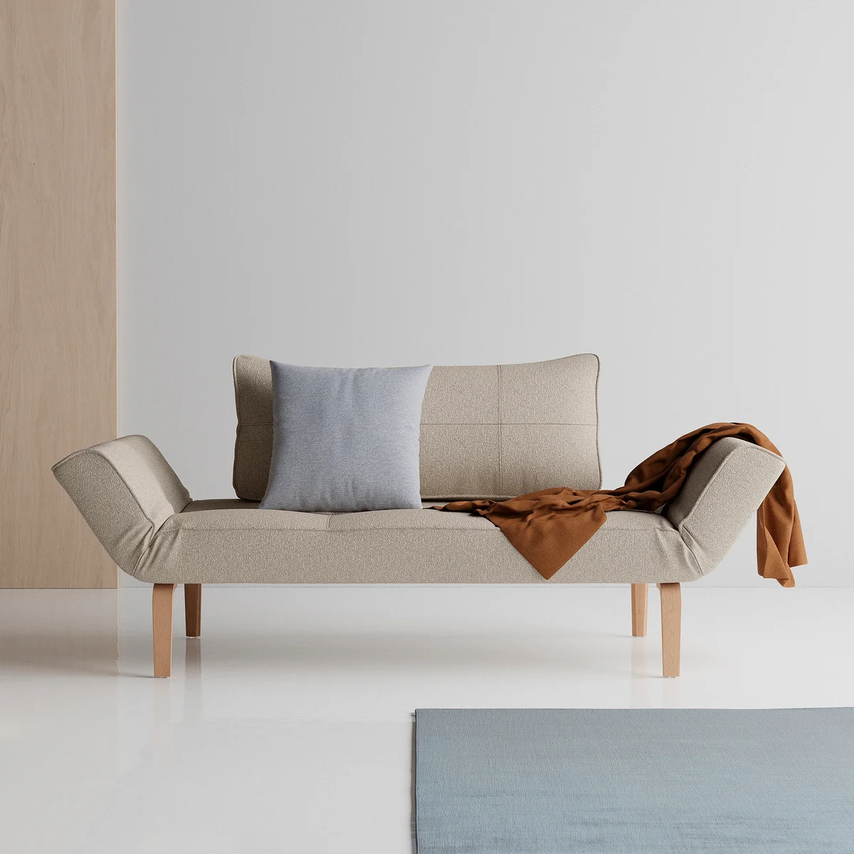 Das Zeal Bow Tagesbett des dänischen Designers Per Weiss vereint nordische Schlichtheit mit durchdachter Funktionalität. Mit seinen abgerundeten Holzbeinen, klaren Nähten und den seitlich verstellbaren Flügeln passt es sich flexibel an unterschiedliche Bedürfnisse an – ob als gemütliches Sofa, komfortables Loungemöbel oder vollwertiges Einzelbett.
