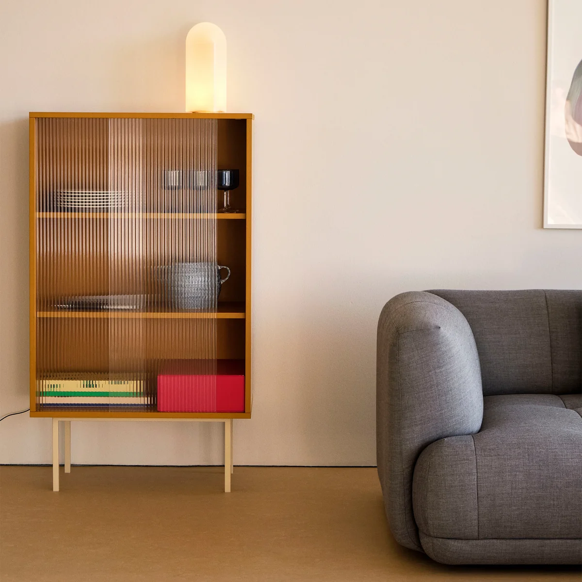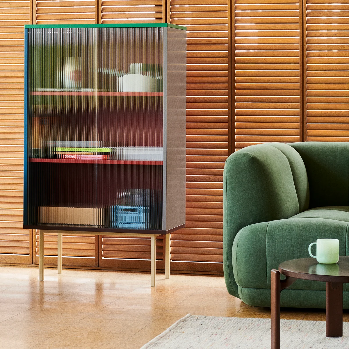 Das Colour Cabinet der belgischen Designerin Muller Van Severen für den dänischen Hersteller HAY verbindet klares, minimalistisches Design mit kontrastreichen, lebendigen Farben. Ausgehend von der Funktionalität des Cabinets erforscht Muller Van Severen wie durch Kontraste und Zusammensetzung ähnlicher Materialien Möbel hervorgehoben und zur Geltung gebracht werden. Dank des vielseitigen Designs, einer Vielzahl von Größen und Varianten eignet sich das Colour Cabinet für jegliche Aufbewahrungs- und Präsentationszwecke. Der Korpus besteht aus organisch gefärbtem Valchromat®, einem einzigartigen, robusten MDF-Material ist. Der tragende Rahmen wird aus langlebigem Stahl gefertigt.