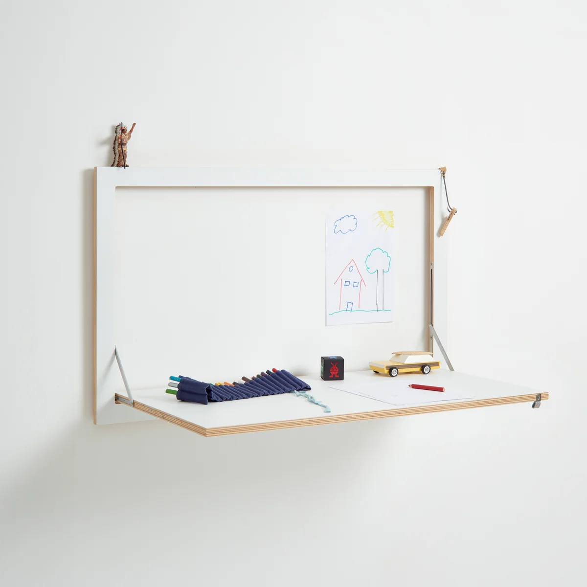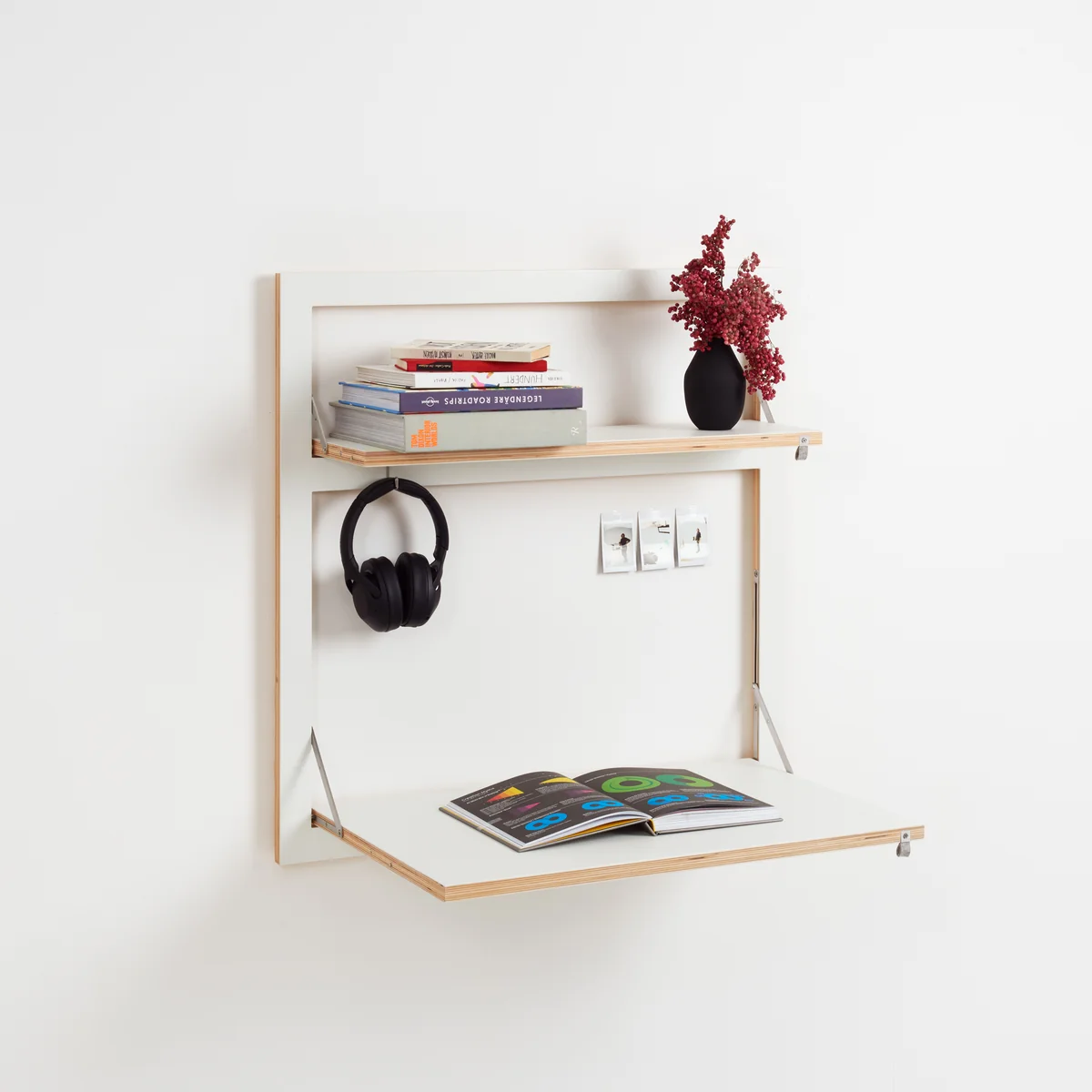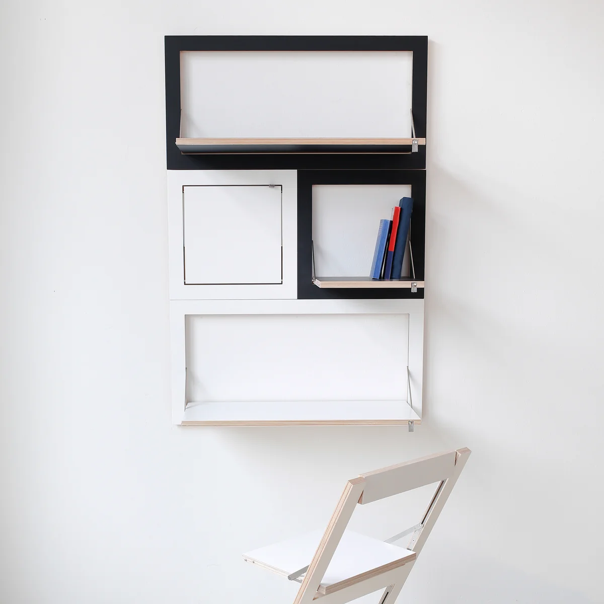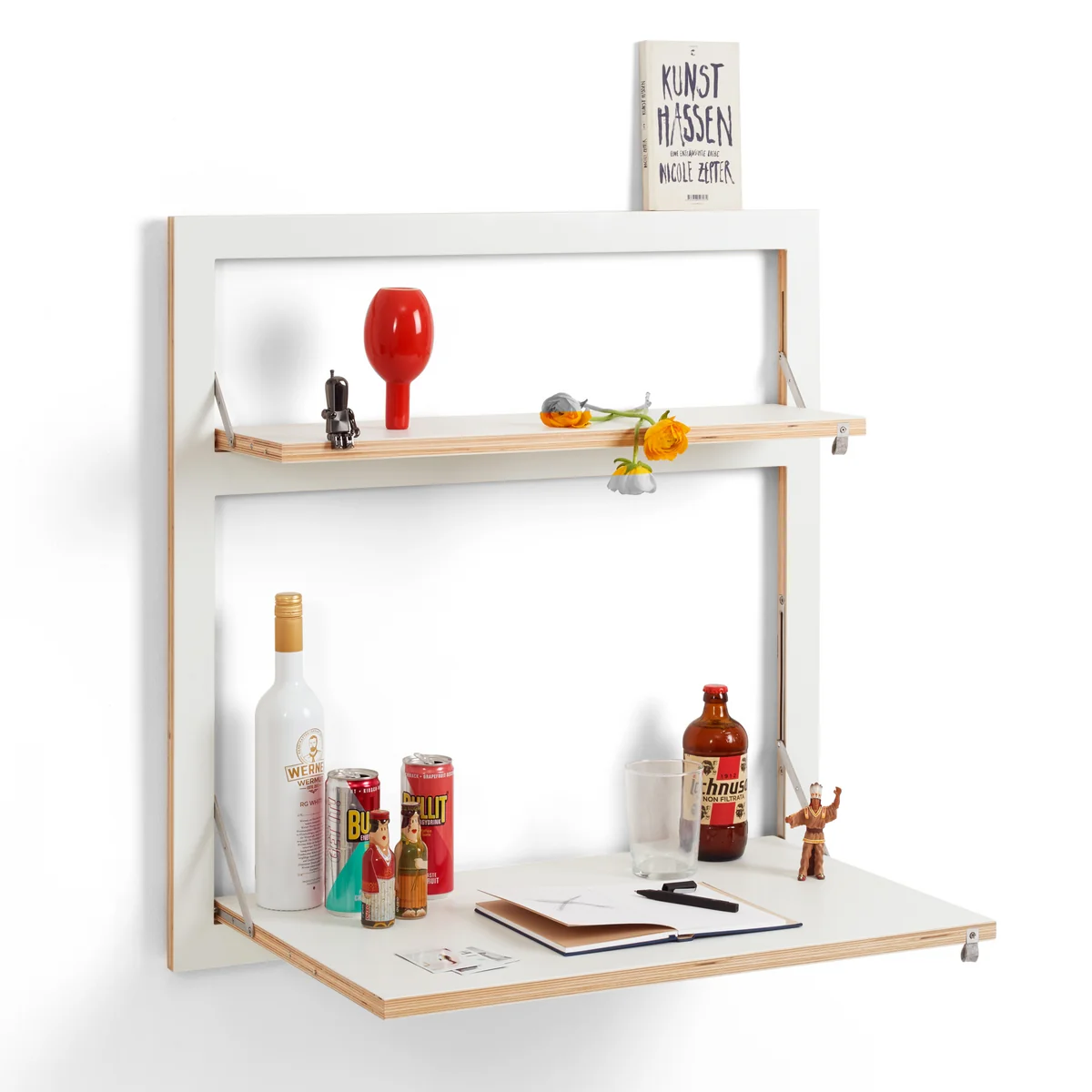 Fläpps Sekretär/in von Ambivalenz ist ein funktionaler und platzsparender Wandsekretär zum Ausklappen. In beliebiger Höhe montiert und somit als Sitz- oder Stehplatz geeignet, überzeugt der Wandsekretär eingeklappt durch seine extrem flache Tiefe von nur 3 cm. Aufgeklappt wird der Sekretär zu einem wahren Multifunktionstalent. Fläpps Sekretär/in kann als Schreibtisch, Esstisch, Basteltisch und vieles mehr verwendet werden.