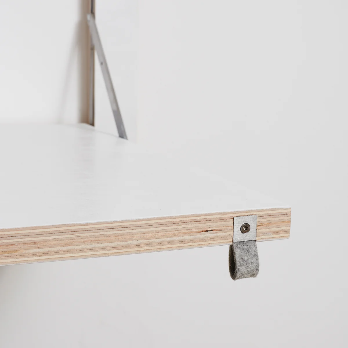 Der Wandsekretär wird aus Multiplex Birke hergestellt, während die Klappfunktionen aus Edelstahl bestehen. Eine kleine Schlaufe aus Filz erleichter das Ausklappen der Arbeitsfläche. Die Oberflächen werden in Handarbeit lackiert und sind in verschiedenen Farben sowie Motiven erhältlich. In weiß verschmilzt der Sekretär beispielsweise mit der gleichfarbigen Wand, während ein Sekretär mit Motiv eingeklappt zum dekorativen Bild an der Wand wird.