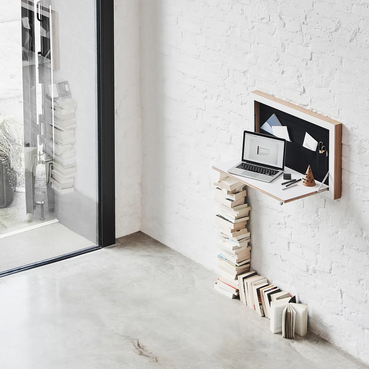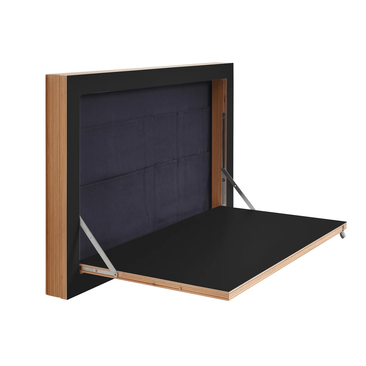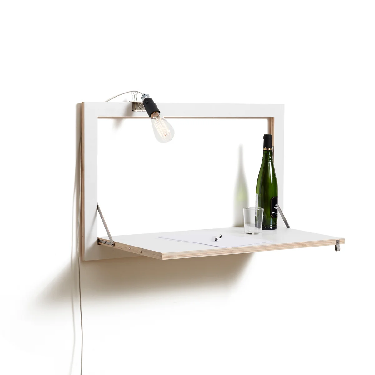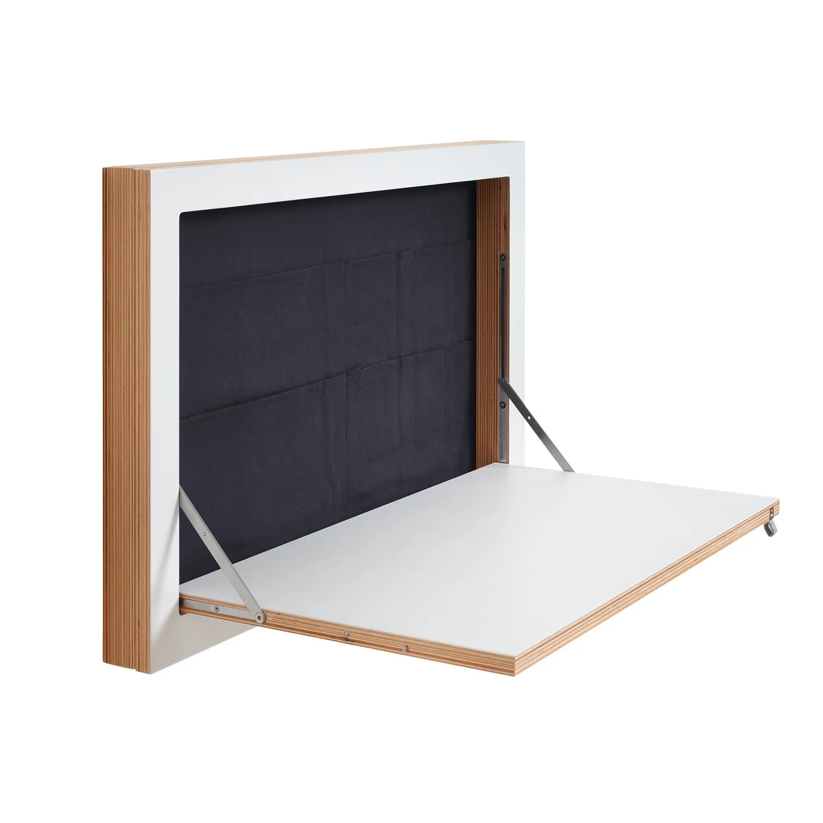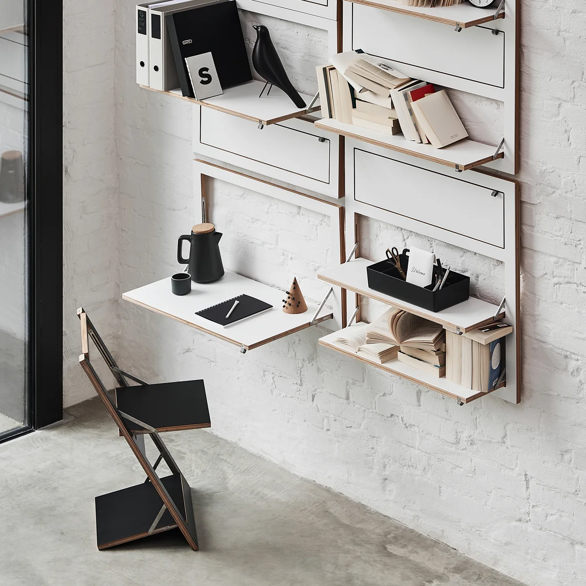 Der Fläpps Staatssekretär/in von Ambivalenz ist ein klappbarer Sekretär für die Wand. Eingeklappt überzeugt der Sekretär mit einer extrem dünnen Gesamttiefe, doch erst ausgeklappt entfaltet er seine gesamtes Potenzial.