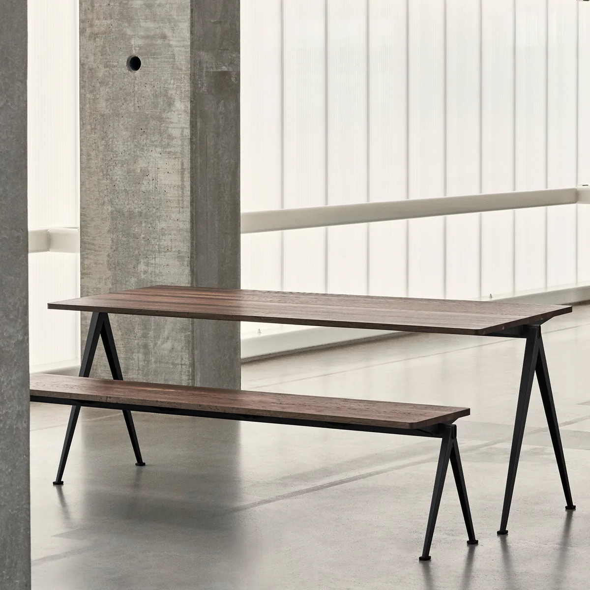 Der Pyramid Tisch kommt in unterschiedlichen Variationen. Zusammen mit der Pyramid Kollektion, bestehend aus Bänken und Tischen, wurde auch der passende Result Stuhl neu aufgelegt.