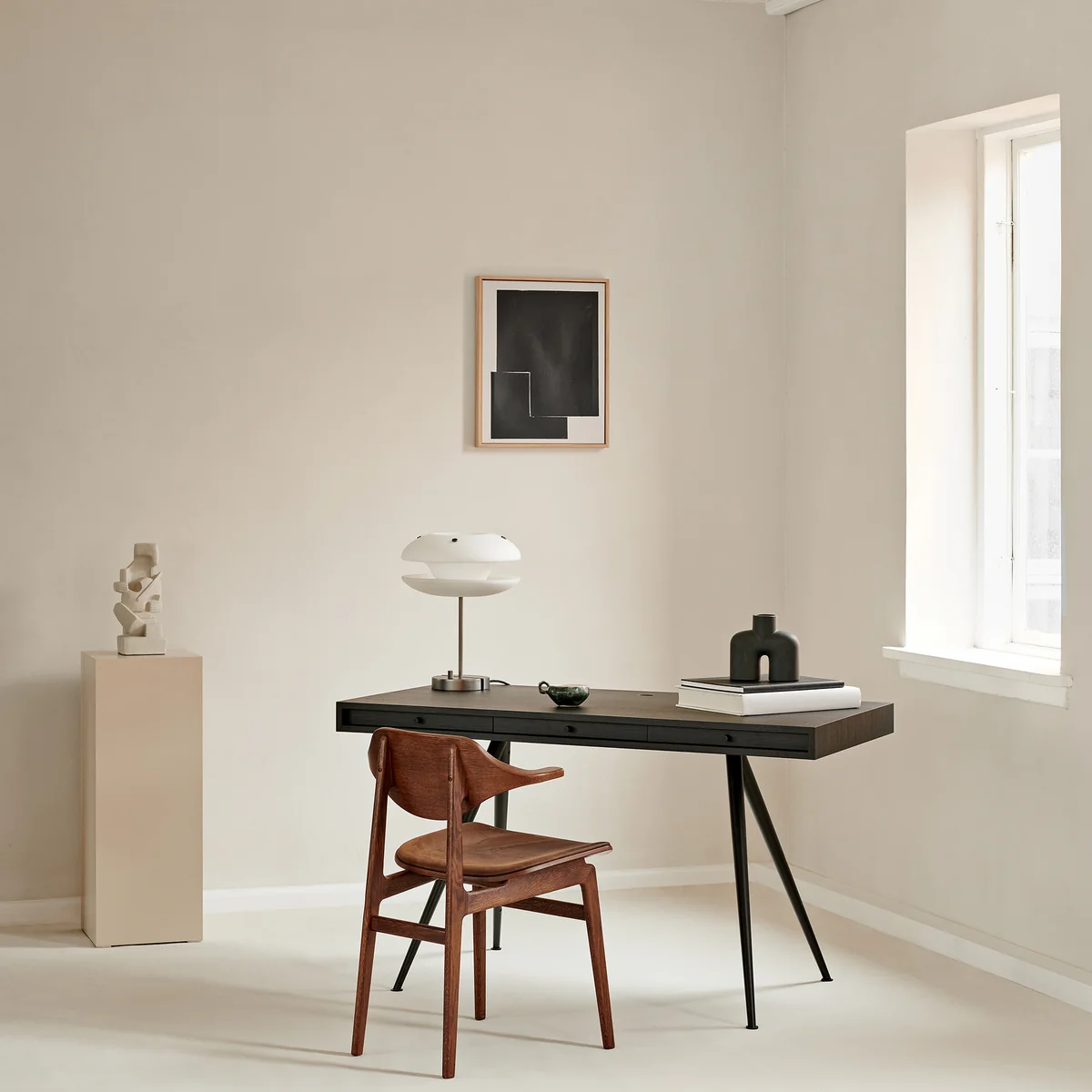 Der JFK Schreibtisch von Kristian Sofus Hansen und Tommy Hyldahl für Norr11 ist eine Neuinterpretation des klassischen 60er Jahre Bürotisches. Der Name ist eine Hommage an die klassischen dänischen Bürotische, die John F. Kennedy in den 1960er Jahren oft nutzte.