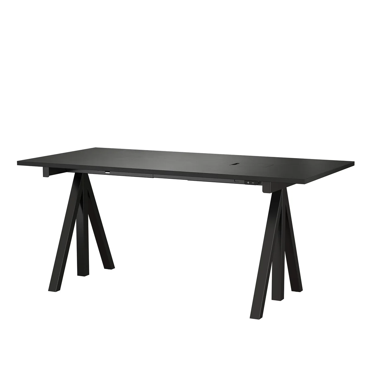 Der höhenverstellbare Schreibtisch aus der Works Kollektion von String ist ein klassischer Arbeitstisch, allerdings ohne dessen schwere Anmutung. Mit einem Verstellbereich zwischen 715 und 1185 mm ist er für Menschen und Berufsgruppen aller Art geeignet.