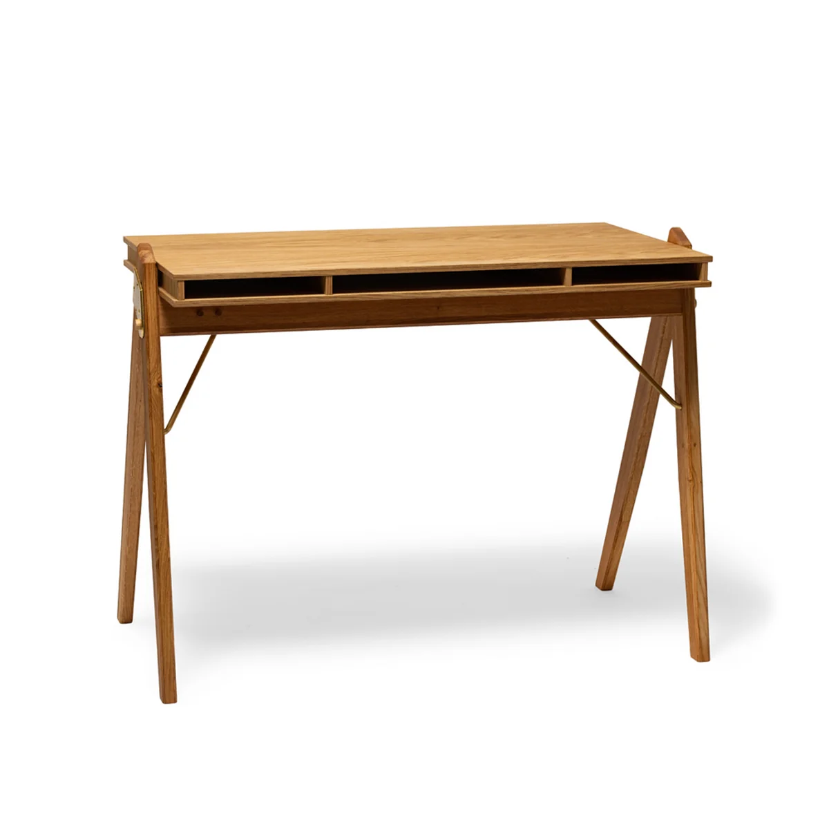 Laptop, Zeitschriften, Notizbücher und andere Kleinigkeiten können ganz einfach in den drei flachen Fächern, die sich unterhalb der Arbeitsplatte befinden, aufbewahrt werden. So bleibt die Tischoberfläche frei und übersichtlich.
