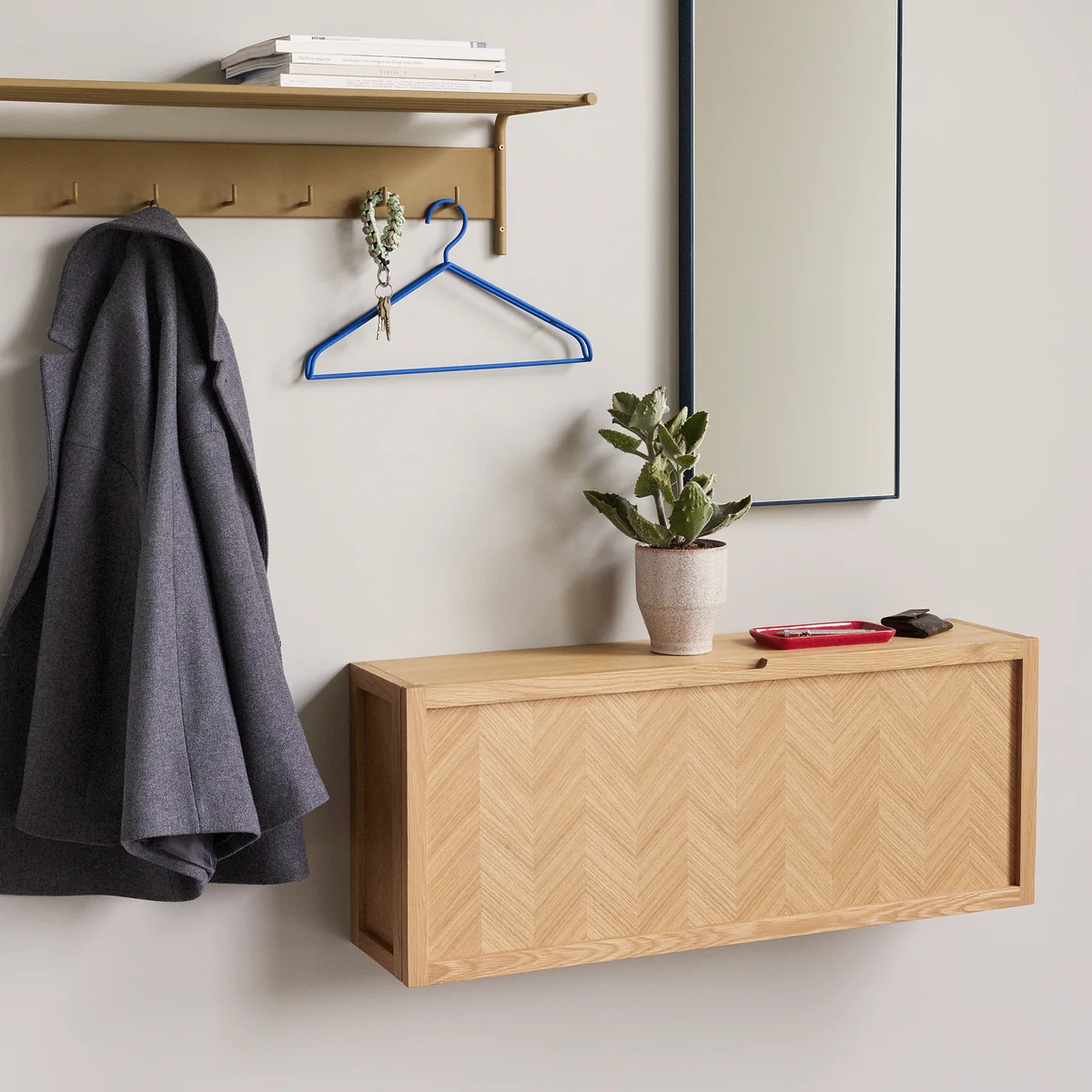 Der Herringbone Schuhschrank des dänischen Herstellers Hübsch Interior ist mit seinem Fischgrätenmuster überaus stilsicher. Der Große Wandschuhschrank wird aus Eichenfurnier gefertigt. Sneakers, Pumps, Boots und Co finden ausreichend Stauraum. Herringbone kann wunderbar im Flur oder Eingangsbereich platziert werden.